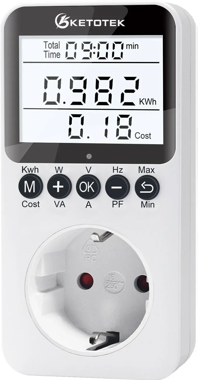 Zustand: Neu - Stromzähler - VoltShine - B1072595 - EAN: 8447343144930 - Wiederaufladbarer Energieverbrauchsmesser mit LCD-Display mit Hintergrundbeleuchtung, ermöglicht die Überwachung des Stromverbrauchs und schützt Ihre Geräte. Sparen Sie Energiekosten. - bei Amazon.de Dieses KETOTEK Modell ist mit 25,99 Euro eine zuverlässige Option mit Ã?berlastschutz und LCD-Bildschirm. ![]() ![]() KETOTEK Stromverbrauchsmesser, Stromzähler für steckdose, Energiekostenmessgerät Mit LCD Bildschirm Hintergrundbeleuchtung, Strommessgerät überlastschutz 3680W
