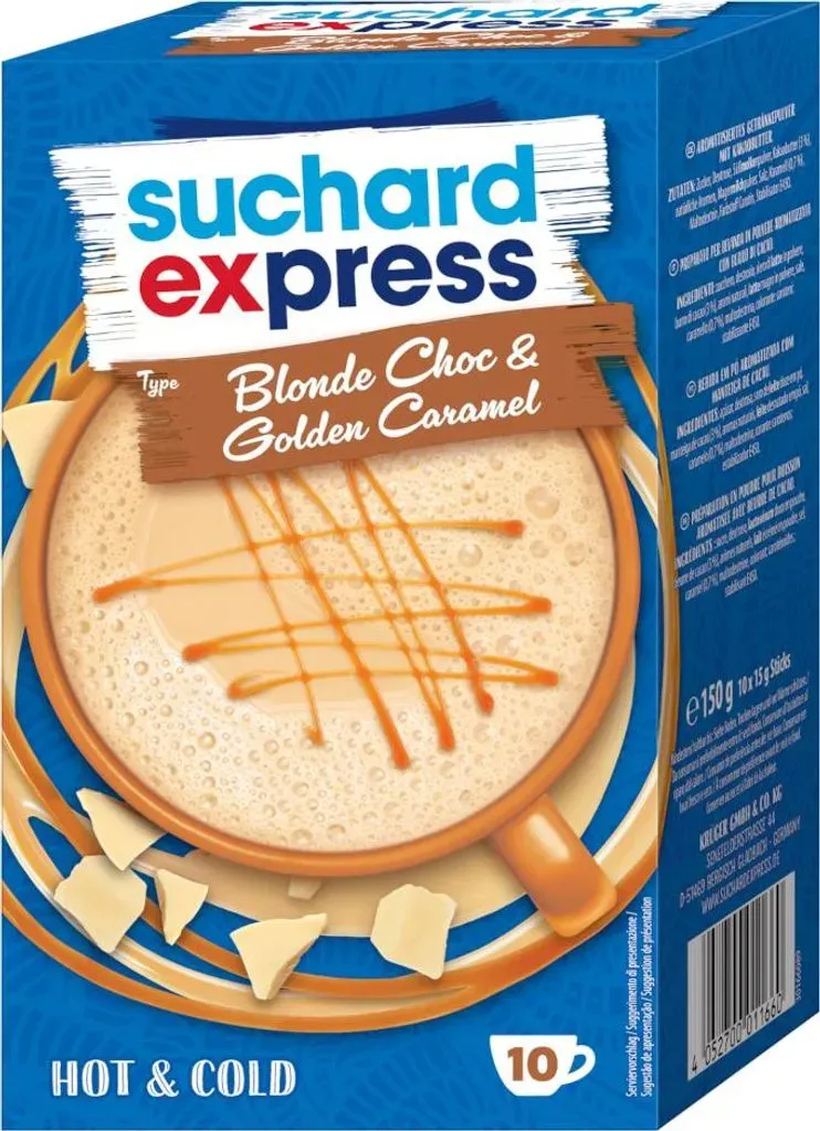 ![]() ![]() Suchard Express Blonde Choc & Golden Caramel, Trinkschokolade, 10x 15g Sticks, einzelne Tassen-Portionen, Heiß & Kalt genießen