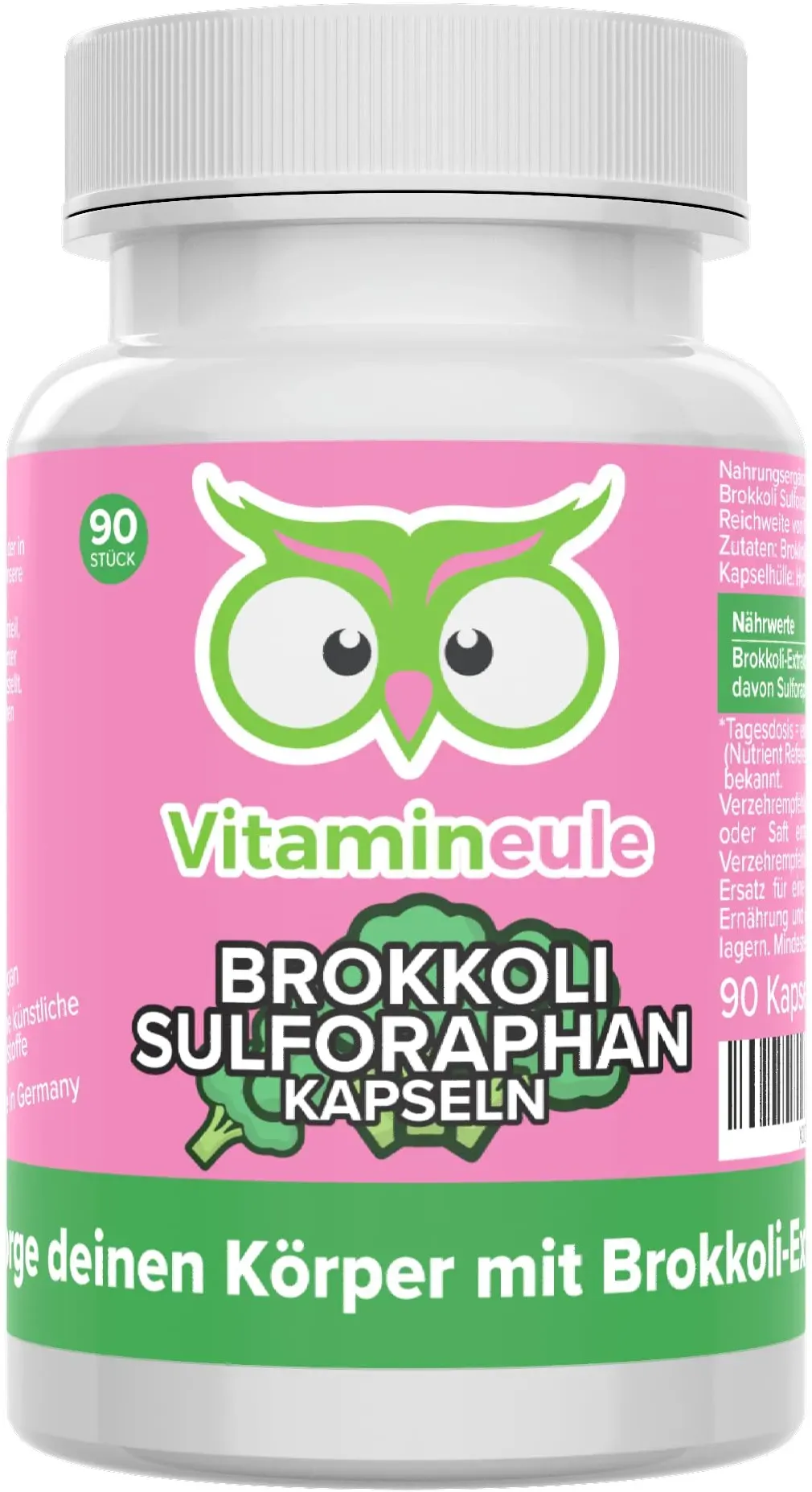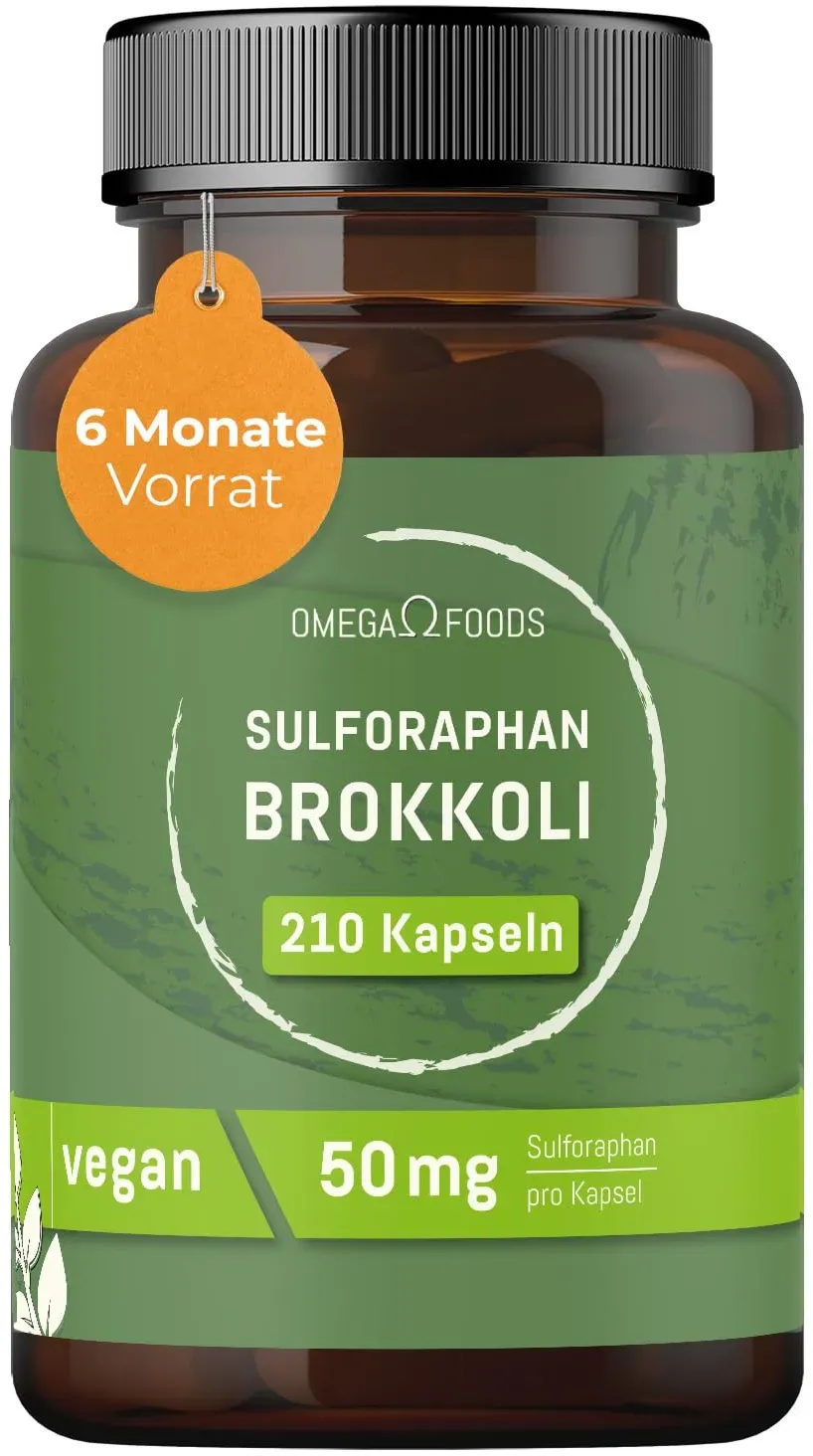 Verfügbarkeit: Auf Lager - Kategorie: Nahrungsergänzungsmittel - OMEGA FOODS - BROKKOLI HOCHDOSIERT: Unsere Brokkoli Kapseln enthalten pro Kapsel 50mg Sulforaphan damit bist Du perfekt versorgt. OHNE FüLLSTOFFE: Wir verzichten auf alle unnötigen Zusätze. Bei uns erhältst Du ausschließlich reinen Brokkoli Extrakt aus Brokkolisprossen in Kapselform. 210 KAPSELN: 210 Brokkoli Kapseln mit reinem Sulforaphan. Mit unserer Tagesdosierung von 1 Kapsel hast Du also 210 Portionen das sind über 6 Monate Vorrat. VEGAN: Während des Produktionsprozesses in unserer HACCP-Produktion entstehen keine tierischen Erzeugnisse daher kannst Du die Kapseln hervorragend in Deinen veganen Lebensstil integrieren! LEICHT ZU SCHLUCKEN: Schnapp Dir einfach ein Glas Wasser und Du wirst merken, dass das Einnehmen unserer Brokkoli Kapseln angenehm sein wird! - 17,95 Euro bei Amazon Marketplace Health & Personal Care - gefunden von billiger.de Diese Kapseln von Vitamineule sind laborgeprüft und bieten eine gute Konzentration an Sulforaphan. ![]() ![]() Brokkoli Sulforaphan Kapseln hochdosiert - 400 mg 30:1 Extrakt (entspricht 12.000 mg Brokkoli-Sprossen) - mit 40 mg Sulforaphan - Produktion in Deutschland - vegan & laborgeprüft - Vitamineule®