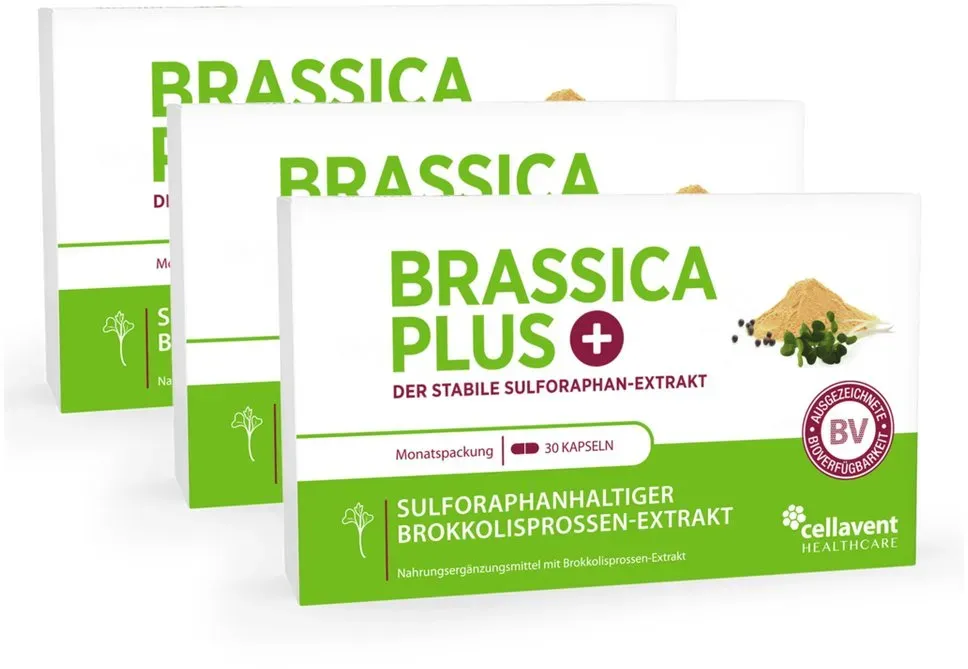 Verfügbarkeit: lieferbar-in 2-3 Werktagen bei dir - Kategorie: Nahrungsergänzungsmittel - Cellavent Healthcare - GTIN:4260346852138 - Produktinformationen Bezeichnung des Nahrungsergänzungsmittels , Sulforaphan Brokkolisprossen Kapseln - Brassica PLUS, Produktdetails Geschmacksrichtung , 90 Kapseln, Darreichungsform , Kapseln, Zutaten , Brokkolisamen-Extrakt, Maltodextrin, überzugsmittel (Kapselhülle): Hydroxypropylmethylcellulose (pflanzlich); Verdickungsmittel: Gummi arabicum, Zusatzstoffe , Keine, Dosierungsempfehlung , Täglich eine Kapsel mit ausreichend Flüssigkeit während oder nach einer Mahlzeit einnehmen. Nicht auf nüchternen Magen einnehmen., Allergene , Keine, Hinweise Warnhinweise , Nahrungsergänzungsmittel dienen nicht als Ersatz für eine abwechslungsreiche und ausgewogene Ernährung. Die angegebene tägliche Verzehrempfehlung darf nicht überschritten werden. Personen mit Erkrankungen der Schilddrüse müssen vor der Einnahme von Brassica PLUS mit Ihrem Arzt sprechen., Wissenswertes Herstellungsland , Deutschland, - 72,95 Euro bei OTTO - gefunden von billiger.de Cellavent Healthcare bietet mit diesem Produkt eine sehr große Packung ihrer Brassica PLUS Kapseln, ideal für Langzeitanwender. ![]() ![]() Cellavent Healthcare Sulforaphan Brokkolisprossen Kapseln - Brassica PLUS Kapseln