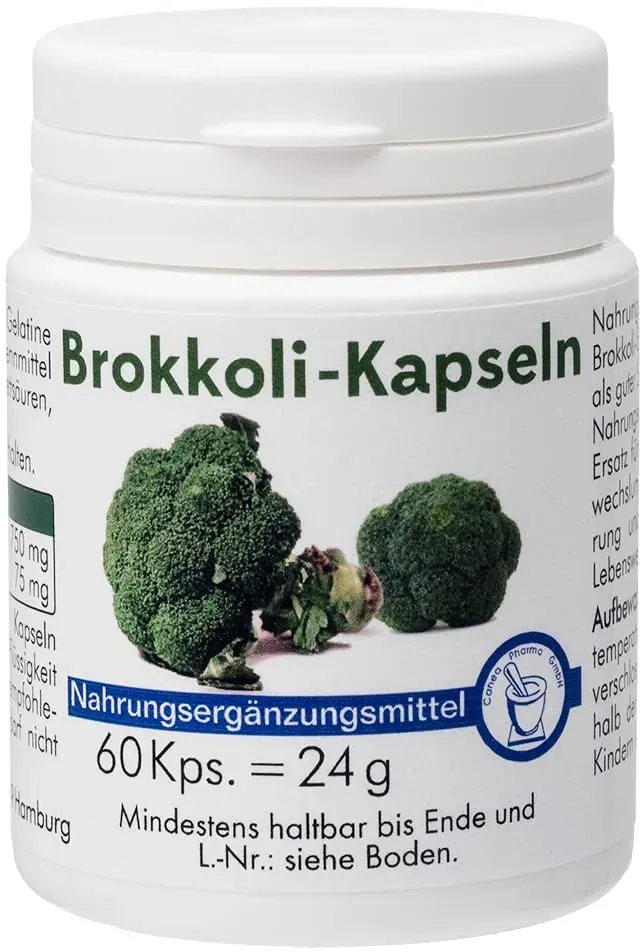 Verfügbarkeit: Auf Lager - Kategorie: Nahrungsergänzungsmittel - Vitabay - GTIN:4250556508154 - 𥦠SULFORAPHAN - Unsere Brokkoli Kapseln enthalten zusätzlich pro Kapsel auch 50 mg Sulforaphan. Sulforaphan ist ein in Brokkoli natürlich vorkommender sekundärer Pflanzenstoff, der besonders für seine vielfältigen Eigenschaften geschätzt wird. 𥦠LANGZEIT VERSORGUNG - Jede Packung enthält 60 Brokkoli Kapseln mit jeweils 500 mg Brokkoli Extrakt. Dies ermöglicht eine langfristige Anwendung und stellt sicher, dass Sie über einen längeren Zeitraum versorgt sind. 𥦠VEGAN OHNE ZUSATZSTOFFE - Unsere Brokkoli Kapseln bestehen ausschließlich aus biologischen Inhaltsstoffen. Frei von Lösungsmittelrückständen, Nanopartikeln, Konservierungsstoffen und Gentechnik. 𥦠LABORGEPRüFT - Dank umfangreichen Kontrollen und Verarbeitung nach internationalen Qualitätsnormen ren wir die geprüfte Qualität und Reinheit für unsere Brokkoli Kapseln. 𥦠2 ERFAHRUNG - Unser Ziel ist es, die besten Brokkoli Kapseln herzustellen. Unsere 25-jährige Erfahrung ermöglicht uns eine einzigartige, schonende Herstellung für eine maximale Wirksamkeit - Für deinen Körper nur das Beste! - 14,99 Euro bei Amazon Marketplace Health & Personal Care - gefunden von billiger.de Diese Kapseln von Pharma-Peter sind eine solide und preisgünstige Wahl für den Einstieg. ![]() ![]() PHARMA PETER Pharma-Peter Brokkoli Sulforaphan Kapseln, 60 Stück