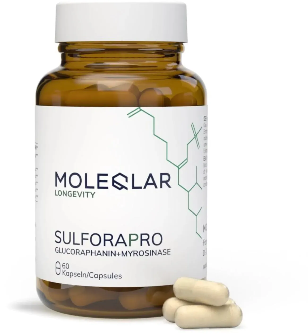 Verfügbarkeit: Auf Lager - Kategorie: Nahrungsergänzungsmittel - MoleQlar - GTIN:4260683650336 - SULFORAPHAN KAPSELN Das Molekül Sulforaphan ist ein wichtiger Vertreter der sekundären Pflanzenstoffe und kommt häufig in Gemüsesorten wie Brokkoli vor. EFFIZIENT BIOVERFüGBAR Die Kombination von Glucoraphanin (Vorstufe) und Myrosinase (Aktivierungsenzym) ahmt die natürliche Entstehung von Sulforaphan in unserem Verdauungstrakt nach. In der Kapsel trifft Sulforaphan zusätzlich auf feinsten Brokkoli-Extrakt. ANWENDUNGSEMPFEHLUNG - Wir empfehlen 2 Kapseln Sulforapro morgens vor dem Frühstück zusammen mit ausreichend Flüssigkeit einzunehmen. Die gleichzeitige Einnahme von säurehaltigen Getränken/Speisen oder Vitamin C Präparaten sollte vermieden werden. SULFORAPRO INHALTSSTOFFE - 60 Kapseln Sulforapro; 400mg Sulforapro & 600mg Brokkoli-Extrakt pro Portion (zwei Kapseln); ZUTATEN: Glucoraphanin (Vorstufe), Myrosinase (Aktivierungsenzym), Calciumascorbat (Co-Faktor), Brokkoli Extrakt FREI VON UNERWüNSCHTEN ZUSäTZEN - Wir von MoleQlar verzichten bei der Herstellung unserer Produkte vollkommen auf unerwünschte Zusätze oder schädliche Füllstoffe. - 32,90 Euro bei Amazon Marketplace Health & Personal Care - gefunden von billiger.de Dieses liposomale Brokkoliextrakt von Mighty Elements bietet eine hohe Bioverfügbarkeit und Konzentration. ![]() ![]() Mighty Elements - Liposomales Brokkoliextrakt - Hochdosiertes Sulforaphan - 400 mg - 52 mg Sulforaphane pro 10 ml