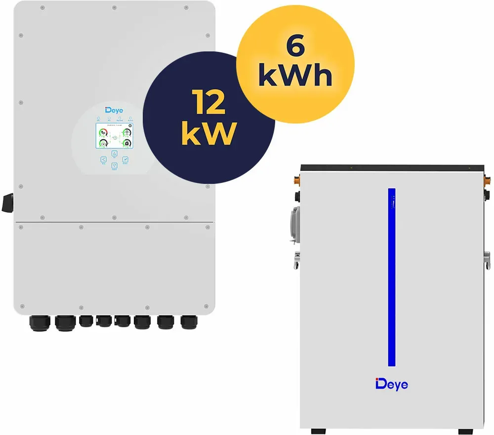 3 Wochen stock_on_order - 12kW Sets Niedervolt Solarenergie - Deye Hybridwechselrichter SUN 5/6/8/10/12K-SG04LP3-EU Erhöhte Effizienz und Zuverlässigkeit Der Deye SUN 5/6/8/10/12K-SG04LP3-EU ist ein innovativer dreiphasiger Hybridwechselrichter mit 48€¯V Batteriespannung. Er kombiniert hohe Leistung mit einem kompakten, zuverlässigen Design und unterstützt ein DC/AC-Verhältnis von 1,3 für kosteneffiziente Systeme. Die Fähigkeit zur asymmetrischen Leistungsabgabe pro Phase macht ihn besonders vielseitig in anspruchsvollen Anwendungen. Vorteile auf einen Blick Hohe Lade-/Entladeleistung: Bis zu 240€¯A - ideal für große Batteriesysteme. Intelligente Kommunikation: RS232, RS485, CAN, DRM - für flexible Integration und Fernüberwachung. Stabile Netzunabhängigkeit: 2-fache Leistung im Off-Grid-Betrieb für 10€¯s. Fernwartung & Updates: GPRS, WLAN, Bluetooth oder LAN zur einfachen Parametrierung und Überwachung. Weitspannungsbereich: MPPT von 200-650€¯V bei max. 800€¯V DC-Eingang - ideal für große PV-Strings. Hohe Effizienz: 97,6€¯% max. Gesamtwirkungsgrad, MPPT 99€¯% Technische Highlights Modelle: 5K / 6K / 8K / 10K / 12K Batterietyp: Blei-Säure / Lithium-Ionen (48€¯V) Lade-/Entladestrom: bis zu 240€¯A Max. DC-Leistung: bis 15.600€¯W MPPT-Spannung: 200-650€¯V / Max. 800€¯V Netztyp: 3L+N+PE (dreiphasig) AC-Nennleistung: 5-12€¯kW Spitzenleistung (Off-Grid): 2-fach für 10€¯s AC-Spannung: 220/230€¯V AC-Frequenz: 50/60€¯Hz (±5€¯Hz) Gesamte THDi: 99€¯% Kommunikation: RS232, RS485, CAN, ... Dieses Set bietet einen Hybrid-Wechselrichter mit einem Deye RW-M6.1-B Speicher von 6,14 kWh, was eine solide Speicherkapazität für den Eigenverbrauch darstellt. ![]() ![]() SET Deye Hybrid-Wechselrichter 12kW SUN-12K-SG04LP3-EU + 1x Deye RW-M6.1-B I 6,14 kWh Batteriespeicher