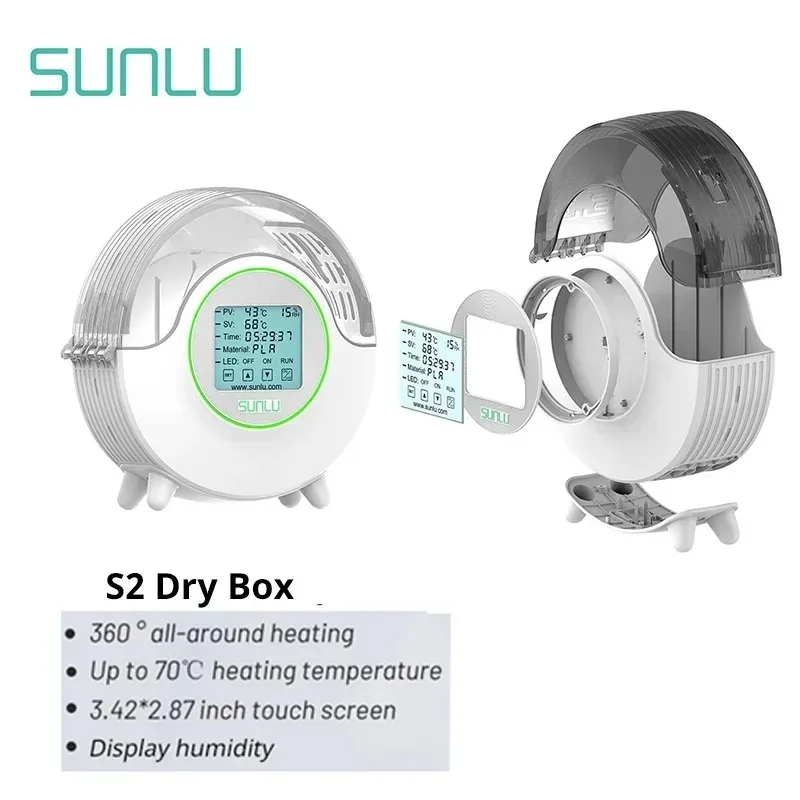 SUNLU - SUNLU S2 Trockner Box Display Luftfeuchtigkeitsüberwachung Trocknen 70 Heizung 360 Surround-LED-Touchscreen mit gleichmäßig trockener Zeiteinstellung - bei de.aliexpress.com - aus Yadore Produktdaten Für 44.39 Euro erhalten Sie einen Upgrade-Filadryer mit LED-Touchscreen und 360°-Surround-Heizung. ![]() SUNLU S2 3D-Filament-Trockner, Upgrade-Filadryer, LED-Touchscreen, Trockenbox, 360 -Surround-Heizung, einstellbare Thermo-3D-Druck-Trocknung