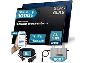Gewöhnlich versandfertig in 6 bis 7 TagenSUNNIVA® 500W Balkonkraftwerk BIFAZIAL FULLBLACK komplett Steckdose HOYMILES 400 Watt Wechselrichter, PV Solaranlage Komplettset, 1x 500W N-Type Glas-Glas Bifacial Solarmodule, 5m Kabel