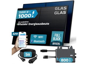 Erneuerbare Energie Wohnen Haus Garten Heimwerken - - Balkonkraftwerk von SUNNIVA® 1000 W / 800 W Das premium hochwertige Balkonkraftwerk von SUNNIVA® mit einer Maximalleistung von 1000 W / 800 W enthält einen Wechselrichter, dessen Leistung 800W beträgt und der per Plug Play in wenigen Minuten ein - Versandkostenfrei: true - Lieferzeit: 10 Tage - product_flag_accessory_wohnen: true - - - bei Marktkauf - gefunden von shopping24 Dieses 1000W Balkonkraftwerk mit ECOFLOW 800W Wechselrichter bietet eine gute Leistung und ist eine beliebte Wahl. ![]() SUNNIVA® 1000W Balkonkraftwerk BIFAZIAL FULLBLACK komplett Steckdose ECOFLOW 800 Watt Wechselrichter, PV Solaranlage Komplettset, 2x 500W N-Type Glas-Glas Bifacial Solarmodule, 5m Kabel 4x 1m Solarkabel