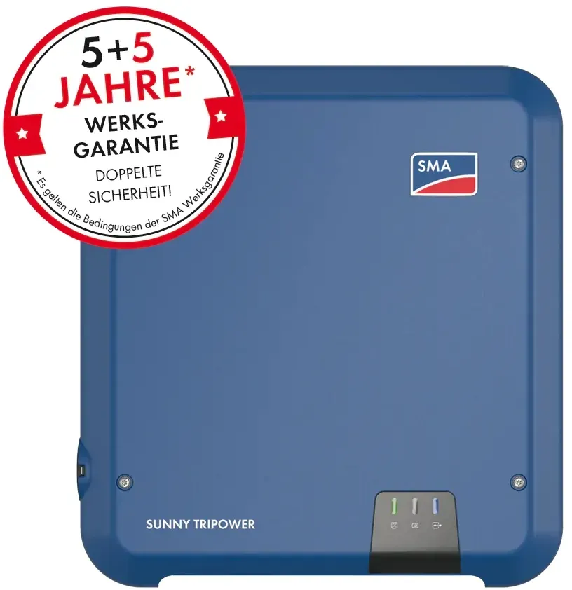 Verfügbarkeit: Die Lieferzeit beträgt 1-3 Werktage - Kategorie: Sonstige Elektroinstallationsartikel - SMA - GTIN:5905515614689 - SMA Solar-Wechselrichter Sunny Tripower 10.0 Der Sunny Tripower 10.0 macht Solaranlagen in Privathaushaltenund kleineren gewerblichen Anwendungen besonders leistungsstark. Er kombiniert höchste Wechselrichter-Performance mit maximalem Rundum-Komfort für seine Anwender. Mit integrierten Services und Verschattungslösungen wird er jeder Herausforderung auf dem Dach gerecht. So sorgt der Sunny Tripower zuverlässig für maximale Solarerträge und senkt die Stromkosten. Vorteile im überblick: Wechselrichter für die Einspeisung von Strom aus Photovoltaikanlagen in das Niederspannungsnetz im Netzparallelbetrieb. Ohne Display, mit Speedwire Schnittstelle und SMA Smart Connected Funktion. Bauart: transformatorlose mit Konvektionskühlung. Integrierte Schutzfunktionen: Verpolungsschutz Erdschlussüberwachung Netzüberwachung, kurzschlussfest (Stromregelung) Einfach und schnell installiert Mit nur 20,5 Kilogramm ist dieser dreiphasige Sunny Tripower schnell und platzsparend installiert. über die integrierte Weboberfläche lässt sich der Sunny Tripower schnell per Smartphone oder Tablet in Betrieb nehmen. 1-Personen-Montage durch geringes Gewicht von 20,5 kg Minimaler Platzbedarf durch kompaktes Design intuitive Inbetriebnahme und lokales Monitoring via Smart Phone & Tablet Solarerträge intelligent optimieren Bewährte Produktfeatures und ... Ein solides Angebot für einen Standard-Solar-Wechselrichter zu einem guten Preis. ![]() ![]() SMA Sunny Tripower 10.0 Solar Wechselrichter STP10.0-3AV-40