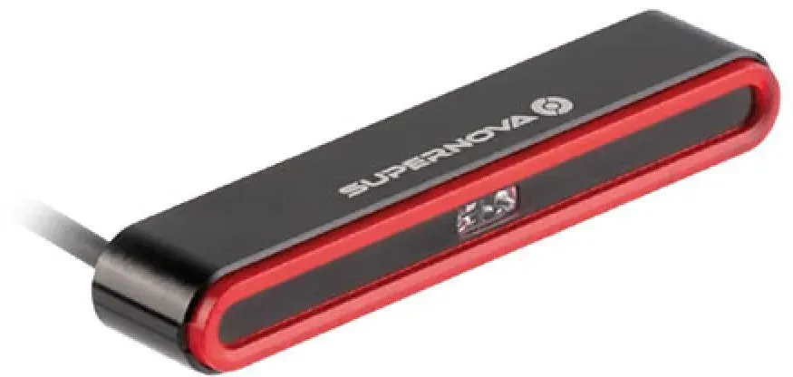 4 Händlerangebote bei billiger.de - Kategorie: Fahrradlampen - Supernova - Supernova E-Bike-Rücklicht TL3 MAX. Das TL3 MAX ist das bisher hellste zugelassene SUPERNOVA Rücklicht. Die 52 Power-LEDs erzeugen beim Bremslicht die knapp 8-fache Lichtstärke als die bisher hellsten zugelassenen Rücklichter im Handel. Bei starker Verzögerung blinkt das Notbremslicht auf. Wie das kleinere TL3 PRO besitzt auch die MAX Version einen hochpräzisen 3-Achs-Sensor und löst das Bremslicht ohne speziellen Bremshebel aus. Die helle und homogene Lichtsignatur sorgt für eine erhöhte Sichtbarkeit auch von der Seite. Das TL3 MAX wird mit 12 Volt Spannung betrieben und verbraucht maximal 4 Watt. Dadurch ist es mit allen neueren Motoren kompatibel.. Bremslicht mit 3-Achs-Verzögerungssensor Mit separat erhältlichem Zubehör ist auch eine vertikale Montage möglich und mindestens 1 Reparierbarkeit für alle Lichtsysteme Zugelassen für E-Bikes bis 25 km/h Zugelassen nach StVZO. DatenblattArt: RücklichtBefestigung: GepäckträgerBetrieb: E-BikeLeuchtmittel: 52 Power-LEDLichtstärke: 10 cd (Rücklicht), 90 cd (Bremslicht)Spannung: 12 V DCLeistung: 0,8 W (Rücklicht), 4 W (Bremslicht)Maße: 19 x 98,2 x 14 mm (L x B x H)Montagebreite: 50 mmEigenschaften: Bremslicht, wasserdichtKabellänge: 2.000 mm, ohne SteckerKabelausgang: Hinten seitlichMaterial: 6061 Aluminium, poliertGewicht: 40 g (ohne Kabel)Farbe: SchwarzVerpackung: Einzelhandelsverpackung. Lieferumfang- Rücklicht mit Kabel- 2-fach Verbinder- ... ![]() ![]() Supernova, V-TL3PMX-K-BLK