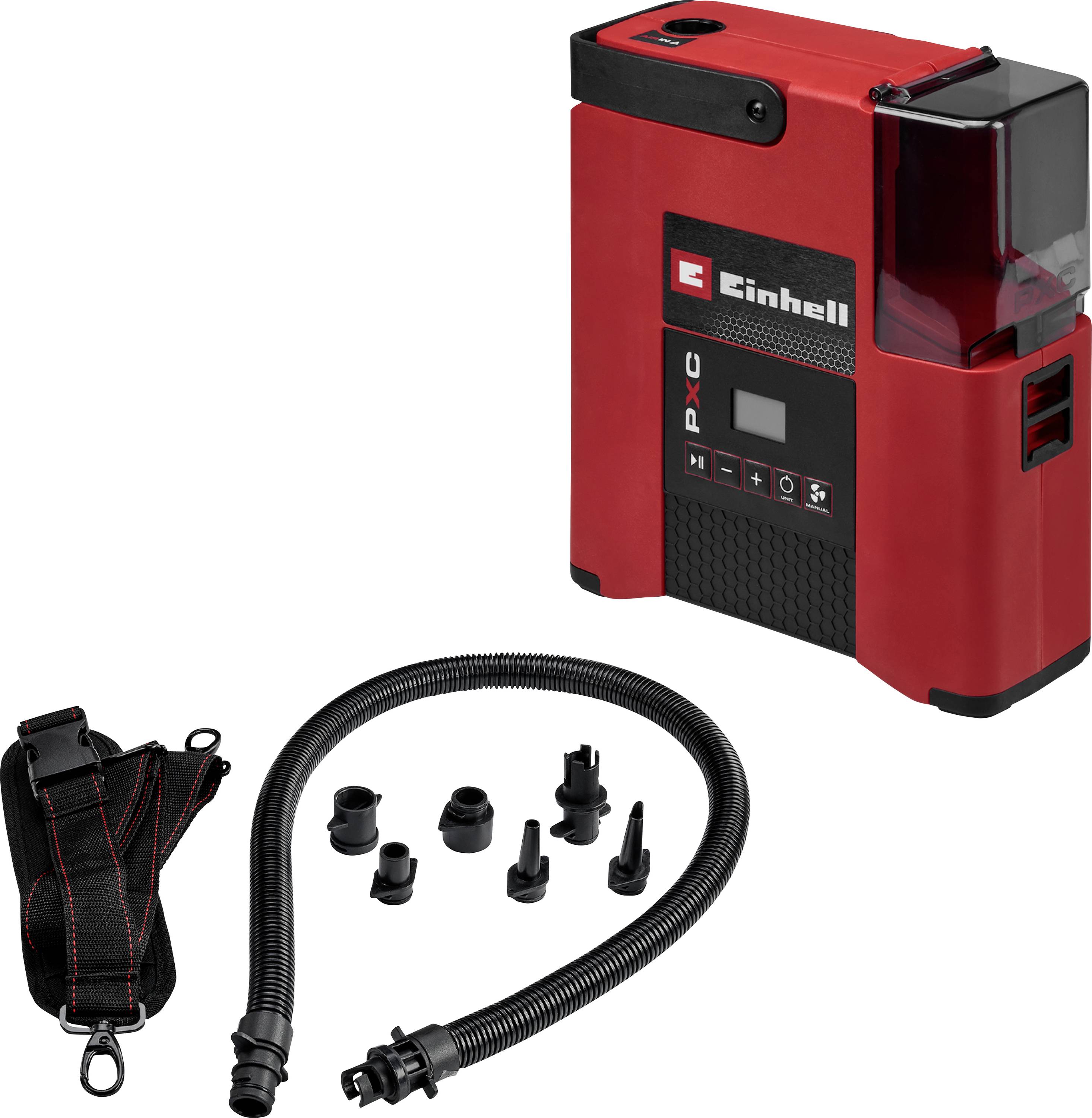 Zustand: Neu - Kompressoren - Einhell - 4020700 - EAN: 4006825687897 - Akku-Plattform - Der Einhell Akku-Kompressor SUPPERO 18/380 ist Teil der Power X-Change Akku-Plattform. Lieferung ohne PXC Akku und Ladegerät. Adapter-Set - Im integrierten Fach befinden sich sechs Adapter für Kite, SUP, Schwimmring, Wasserball, Zelt und Luftmatratze, ein weiterer SUP-Adapter sitzt direkt am Schlauch. Hohe Leistung - Die Niederdruckpumpe liefert bis zu 380 l/min zum schnellen Befüllen, die Hochdruckpumpe bis 80 l/min bei max. 1,38 bar. Ein SUP wird in ca. 7 Minuten aufgepumpt. Auto-Stop & Manuell - Die SUP-Pumpe stoppt automatisch bei Erreichen des voreingestellten Drucks, zusätzlich ist ein manueller Modus zum Nachfüllen verfügbar. Entlüftungsfunktion - Durch Umstecken des Schlauchs kann die Luft schnell ausgesaugt werden, sodass SUPs, Zelte oder Matratzen rasch entleert und platzsparend verstaut werden. Digitale Anzeige - Soll- und Ist-Druck können präzise in bar, psi, kPa oder kg/cm² eingestellt und auf dem Display jederzeit abgelesen werden. Kompakt & mobil - Dank handlicher Bauform, ausklappbarem Tragegriff und Tragegurt mit Schlauchhalterung ist die SUP-Pumpe überall einsatzbereit und leicht zu transportieren. - bei Amazon.de ![]() ![]() Einhell Akku-Kompressor SUPPERO 18/380 4020700