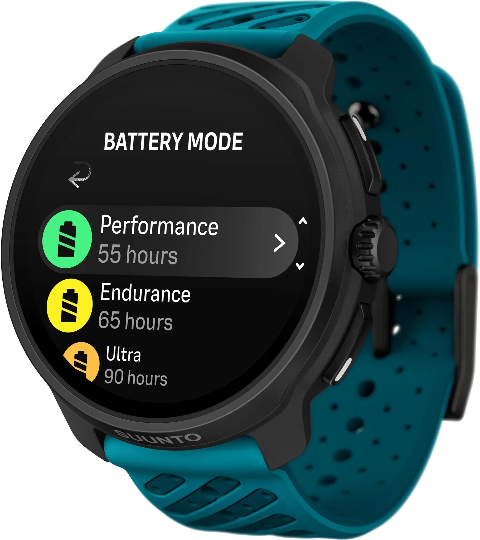 Zustand: Gebraucht - Pulsuhren - SUUNTO Suunto - SS050932000€‹ - EAN: 6417084209870 - Heller Bildschirm - 1,43€ AMOLED Hi-Res Display (466x466) und Saphirglas für klare Sicht bei schlechtem Licht und robusten Bildschirmschutz; Gehäuse aus Titan, federleichte 69 g, schlanke 13,6 mm Höhe und großzügige 49 mm Durchmesser Schnelle Bedienung - Zusätzlich zum Touchscreen ermöglicht die Kombination aus digitalem Krone und Tasten eine präzise Anzeige Ihrer Leistung und eine einfache Bedienung während Rennen und Training Präzise Ortung - Fortschrittenes Zweifrequenz-GPS ermöglicht präzises Positionieren für Outdoor-Aktivitäten; Kostenloser Download von detaillierten globalen Karten, Routenplanung auf dem Handy mit Anzeige wichtiger Wegpunkte auf der Uhr Lange Akkulaufzeit - Bis zu 40 Stunden GPS mit höchster Genauigkeit, ideal für Marathons und Trailrunning; Im täglichen Modus bis zu 12 Tage Aufzeichnung von Herzfrequenz und Schlaf ohne Aufladen; Volle Aufladung in nur 2 Stunden Robust wie immer - Betriebstemperatur von -20 bis 55 „ƒ und Wasserdichtigkeit bis 100 Meter machen die Uhr ideal für Abenteuer; Mit Barometer ausgestattet, können Sie Sturmwarnungen, Höhe und Wettervorhersagen jederzeit am Handgelenk überprüfen Sportbildschirme voller Informationen - Mehr als 95 Sportsmodi, anpassbare Sportbildschirme zeigen nur die wichtigsten Informationen; Neue Funktionen wie Rennzeit, Ernährungserinnerung informieren Sie direkt am Handgelenk über Ihre neuesten Leistungen Ihr täglicher ... Diese Suunto Race Sportuhr bietet ein helles AMOLED Display und präzises GPS zu einem fairen Preis. ![]() ![]() SUUNTO Race Sportuhr - Outdoor Smartwatch, 1,43" Helles AMOLED Display mit Saphirglas, Bequeme Uhrenkrone & Tasten Bedienung, Präzise Zweifrequenz GPS, Lange Akkulaufzeit, 100m Wasserdicht
