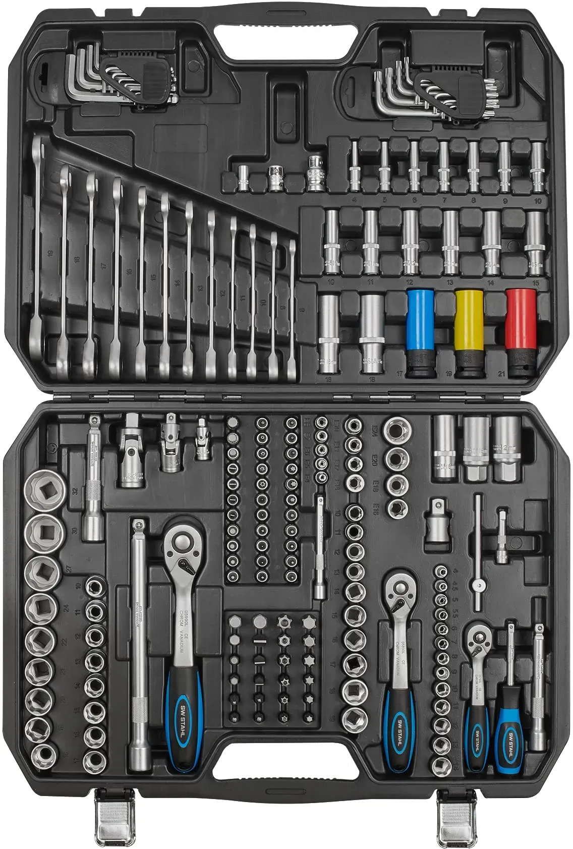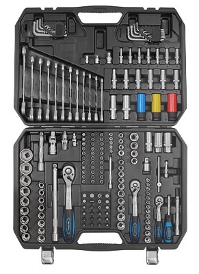 EAN: 4033592039741 - Werkzeugset - Große Auswahl an Schraubwerkzeugen mit drei ergonomischen Umschaltknarren mit 72 Zähnen feinverzahnt ' Je 1/4 Zoll + 3/8 Zoll + 1/2 Zoll Antrieb in den Größen 145 mm, 205 mm, 250 mm für Profi und Hobby Anwender bei Wartungen, Reparaturen und sonstigen Schraubaufgaben.6,3 mm bzw. (1/4') Antrieb ' Wellenprofileinsatz 4 bis 14 mm / Wellenprofileinsatz extra lang 4 bis 10 mm / E-Profil E4 bis E8 mm / Verlängerung in 50 und 100 mm / T-Profil-Einsatz T8 bis T30 / T-Profil-Einsatz mit Stirnlochbohrung T8 bis T30 / Kreuzschlitzeinsatz Pozidriv Nr. 0, 1, 2 / Innensechskant-Einsatz 3 bis 6 mm / Schlitzeinsatz 4,5, 5, 6,5, 7 mm / Kreuzschlitzeinsatz Nr. 0, 1, 2 / Vielzahn-Einsatz 8-10-12 / Kardangelenk / Drehgriff 150 mm / Gleitgriff 110 mm.10 mm bzw. (3/8') Antrieb ' Wellenprofileinsatz 10, 11, 12, 13, 14, 15, 16, 17, 18, 19 mm / Wellenprofileinsatz extra lang 10, 11, 12, 13, 14, 15 mm / E-Profil E10, E11, E12, E14, E16, E18 / Verlängerung 125 mm / Zündkerzeneinsatz 18 mm / Adapter für 8 mm Bits / Kardangelenk.12,5 mm (1/2') Antrieb ' Wellenprofileinsatz 10, 11, 12, 13, 14, 15, 16, 17,18, 19, 20, 21, 22, 24, 27, 30, 32 mm / Wellenprofileinsatz extra lang 16, 18 mm / Druckluft-Krafteinsatz 17-19-21 mm / E-Profil E20, E24 / Zündkerzeneinsatz 16, 21 mm / Drehgriff 250 mm / Verlängerung 125 mm / Kardangelenk / Adapter für 8 mm Bits.Schraubendrehbits 8 mm Antrieb x 30 mm Länge: T-Profil mit u. ohne Bohrung T40 - T70, Innensechskant 7 - 14 mm / Kreuz ... ![]() ![]() SW-Stahl SWSTAHL Steckschlüsselsatz mit Ratschenschlüsseln, 176-tlg. 07635L