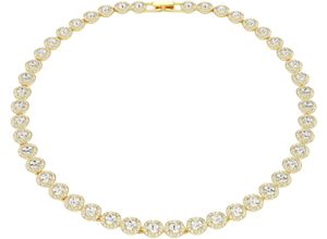 Armbänder Damenmode Themen & Trends Festliche Mode Schmuck & Uhren - EAN:9009656896259 - Dieses faszinierende Schmuckstück interpretiert das klassische Swarovski Tennis Armband mit einem neuen Level an Raffinesse. Das rhodinierte Design besticht rundum abwechselnd mit perfekt aneinandergereihten Swarovski Zirconia und Swarovski Kristallperlen, die diesem modernen Hingucker einen besonders edlen Twist verleihen. Der innovative Verschluss unterstreicht die präzise Verarbeitung und sorgt für sicheren Halt am Handgelenk. Kombinieren Sie dieses Armband mit den dazu passenden Ohrringen oder der Halskette für maximalen, brillanten Glanz. Entfache deine Träume mit meisterhaft gefertigten Swarovski Kollektionen in fesselnden und visionären Designs.: Möchtest du das perfekte Geschenk für besondere Anlässe finden? Swarovski hat eine atemberaubende Auswahl an exquisitem, gewagtem und verspieltem Schmuck, eleganten Uhren, funkelnden Handyhüllen, luxuriösen Kugelschreibern, bezaubernden Deko Figuren und zauberhaften Weihnachtskugeln, die sich ideal als Geschenk für Damen eignen. Zu Weihnachten kannst du mit Swarovski Schmuck und Weihnachtskugeln deinen Liebsten eine Freude bereiten. Die funkelnden und präzise geschliffenen Kristalle verleihen jedem Zuhause eine festliche Wärme und einem weihnachtlichen Dekor einen Hauch von Magie mit zauberhaften Lichtspielen. Ob als Christbaumschmuck oder als Geschenk, Swarovski Weihnachtskugeln sind ein Symbol für festliche Eleganz. Der Valentinstag ... Die Una Angelic Tennis Halskette in Gold ist eine luxuriöse Wahl, die durch ihre goldfarbene Legierungsschicht besonders hervorsticht. ![]() Collier SWAROVSKI 'Schmuck Geschenk Una Angelic Tennis Halskette', gold (gelbgoldfarben, kristallweiß), Halsketten, Damen, Metall, L: 41 B: 8mm, mit Swarovski Kristall, B:8mm
