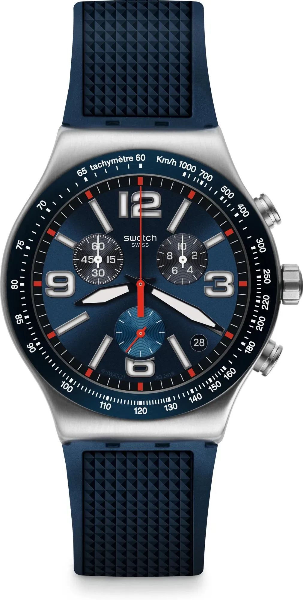 Swatch blue grid META PreisvergleichMit dem Meta-Preisvergleich suchen Sie gleichzeitig bei den großen Preisvergleich Portalen!Jetzt live Suche nach swatch blue grid starten! Swatch blue grid KaufberatungDie Swatch Blue Grid (Modell YVS454) ist eine sportlich-elegante Herrenuhr mit einem markanten blauen Zifferblatt, das ein Gittermuster aufweist. Sie verfügt über eine Stoppuhrfunktion (Chronograph), eine Tachymeter-Skala und eine Datumsanzeige zwischen 4 und 5 Uhr. Das Gehäuse besteht aus Edelstahl mit einem Durchmesser von 43 mm, was der Uhr eine deutliche Präsenz am Handgelenk verleiht. Die Uhr hat eine Swiss Quartz-Bewegung, ist bis 3 ATM wasserdicht und besitzt ein robustes Mineralglas[1][2][4][5]. Beliebte Produktmerkmale und Markenbewertung: