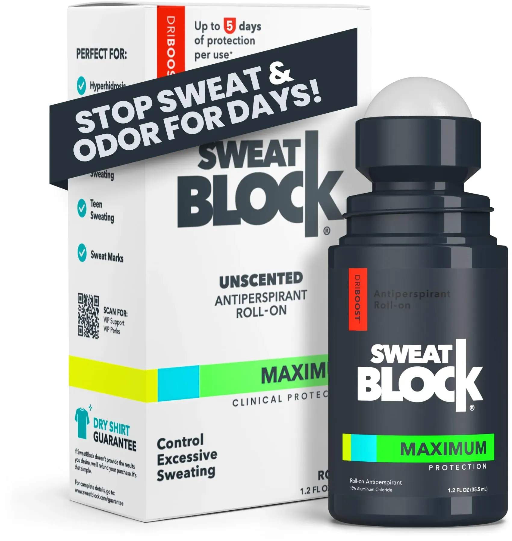 Kategorie: Deodorants - SweatBlock - GTIN:0850864002623 - STOP EMBARRASSING AND UNWANTED SWEAT - Wear the clothes you love and stay dry with SweatBlock. Fortifiied with verified pure aluminum chloride, the most effective aluminum for stopping excessive sweat. PRESCRIPTION STRENGTH FOR HYPERHIDROSIS & EXCESSIVE SWEAT - Maximum clinical strength antiperspirant strong enough for hyperhidrosis, nervous sweating, & hormonal sweating. TAKE BACK YOUR CONFIDENCE - Enjoy life without worrying about sweat. Hug, high-five, and raise your arms without worry. SweatBlock works great as a clinical strength deodorant to stop underarm sweat & underarm odor. DOCTOR CREATED. DOCTOR RECOMMENDED - Our Founder, Dr. Steffensen experienced a first-hand battle with excessive sweating. After store-bought deodorants & antiperspirants failed him, he created the trade-secret SweatBlock formula to stop unwanted sweat. No animal testing. Free from Parabens, Phthalates, Formaldehydes, & Sulfates. Formulated, filled, & sealed in the USA! PLEASE NOTE: This product is a high-strength antiperspirant. It is recommended that you test a small skin area first to ensure skin compatibility and reduce the likelihood of irritation. To avoid irritation, wait 24 hours to apply after shaving underarms. - 24,99 Euro bei Amazon Marketplace Beauty - gefunden von billiger.de Ein Multipack von Nivea für Männer, das langanhaltenden Schutz und Pflege bietet, ohne Flecken zu hinterlassen. ![]() ![]() Nivea Roll On Men 50ml (Pack of 6) Invisible for Black & White Ultimate Impact Long-lasting Protection Against Yellow Stains 48 Hours Sweat Protection With Skin Care