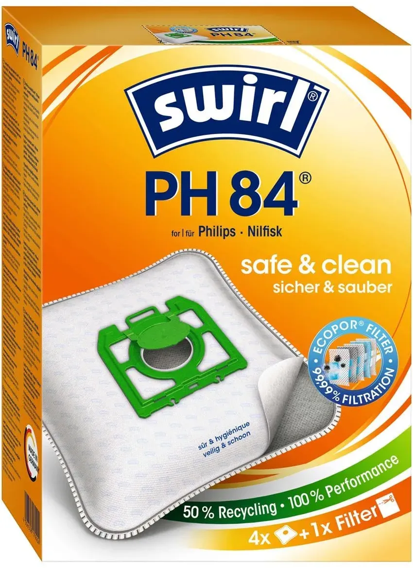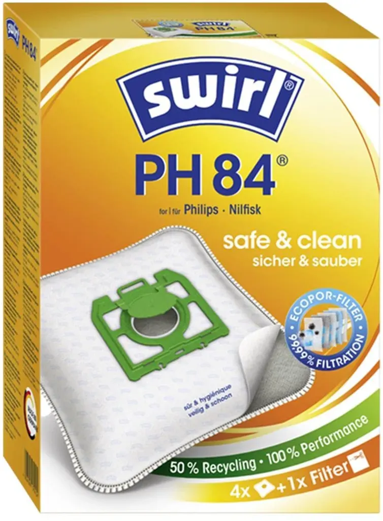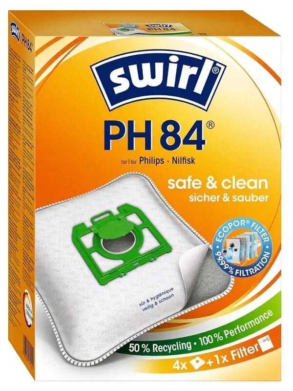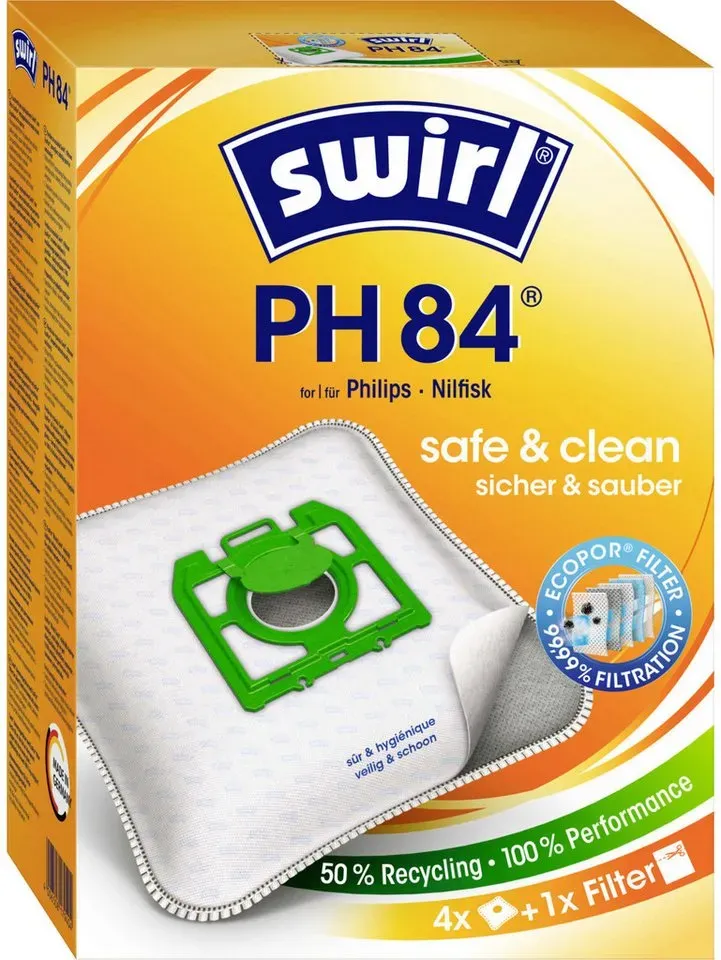 Die Swirl PH 84 Beutel passen für viele Philips-, Karstadt- und Nilfisk-Modelle, z.?B.: Prüfen Sie immer die Modellnummer Ihres Staubsaugers, um sicherzustellen, dass der Beutel passt. Die meisten Swirl PH 84 Beutel filtern bis zu 99,99?% des Hausstaubs und allergenen Feinstaubs. Das ist besonders wichtig für Allergiker. Die Filterung ist oft vom TÜV geprüft und bestätigt. Die Beutel bestehen meist aus mehrschichtigem, reißfestem Vlies. Viele Modelle sind auch bei Feuchtigkeit stabil und halten feinste Staubpartikel sicher im Beutel. Einige Ausführungen verfügen über einen Dirtlock-Staubverschluss, der eine saubere und hygienische Entsorgung ermöglicht. Es gibt sowohl originale Swirl PH 84 Beutel als auch kompatible Alternativen von Drittanbietern. Die kompatiblen Beutel sind meist günstiger, bieten aber oft eine vergleichbare Qualität. ? Beliebte Produktmerkmale