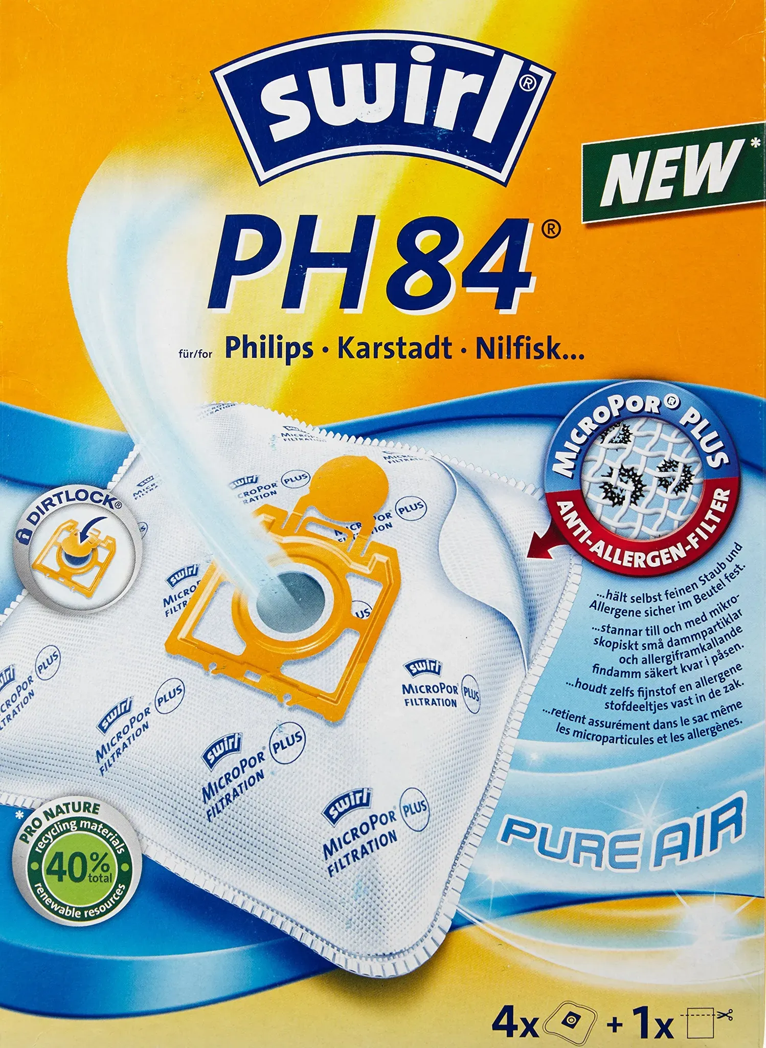 Verfügbarkeit: Auf Lager - Kategorie: Staubsaugerbeutel - Swirl - GTIN:4260331119253 - 2 x Swirl PH 84 Plus AirSpace Staubsaugerbeutel passend fürStaubbeutel Microvlies - 15,99 Euro bei Amazon Marketplace Kitchen - gefunden von billiger.de Dieses Angebot von Galaxus.de für 16.42 Euro bietet NoName Vacuum cleaner bags in synthetic fiber, die Swirl PH84 entsprechen. ![]() NoName Vacuum cleaner bags in synthetic fiber corresponding to Swirl PH84 and Champion 1484CH, Staubsaugerbeutel