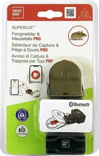 Kategorie: Pflegemittel & Schädlingsbekämpfung - SWISSINNO - GTIN:7640104976233 - Fangmelder Connect SuperCat Bluetooth Meldung über Auslösung von Mause- und Rattenfallen per SWISSINNO App Hat die Falle zugeschnappt? Um zu überprüfen ob eine Maus- oder Rattenfalle einen erfolgreichen Fang getätigt hat, war es bisher notwendig diese zu begutachten. Mit der Connect SuperCat Erweiterung, welche kompatibel mit allen SWISSINNO Maus- und Rattenfallen ist, kann man dies nun, ganz bequem, über ein Smartphone oder Tablet erledigen. Besonders praktisch für die überprüfung von allen Fallen, welche sich an schlecht erreichbaren Orten, wie Dachböden, Zwischenwänden, Kellern etc., befinden. Einfach an die gewünschte SWISSINNO Maus- oder Rattenfalle anstecken und einsatzbereit. über Bluetooth wird der aktuelle Status direkt an die App gesendet, welche kostenlos, sowohl für Apple IOS, als auch für Android Smartphones (ab Android Version 11) über den Google App Store, heruntergeladen werden kann. Da oft mehr als nur eine Falle eingesetzt wird um Ratten oder Mäuse zu bekämpfen, ermöglicht es Connect SuperCat den Status sämtlicher Fallen über eine App abzurufen. Dafür benötigt jede gewünschte Falle die Connect SuperCat Erweiterung. - 22,61 Euro bei voelkner - gefunden von billiger.de Ein Fangmelder Connect plus Mausefalle, der eine fortschrittliche Lösung für die Schädlingsbekämpfung darstellt. ![]() ![]() SWISSINNO Fangmelder Connect plus Mausefalle PRO SuperCat