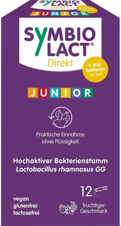 22 Händlerangebote bei billiger.de - Kategorie: Arzneimittel - Klinge Pharma - Symbiolact Direkt Junior Pulver Sticks Nahrungsergänzungsmittel mit hochaktivem Bakterienstamm Mit dem Lactobacillus rhamnosus GG 5 Mrd. Bakterien pro Stick Praktische Einnahme ohne Flüssigkeit Fruchtiger Geschmack Gluten- und lactosefrei Vegan - GTIN:4260298010761 - PZN:19714216 Für Eltern, die eine spezielle probiotische Unterstützung für Babys suchen, ist dieses Produkt eine gute und preiswerte Option. ![]() Symbiolact Direkt Junior Pulver Sticks