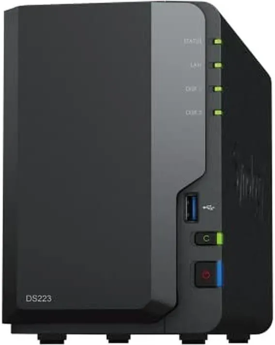 Auf Lager Versand durch AmazonSynology DS223 2-Bay Diskstation NAS (Realtek RTD1619B Quad-Core 2GB Ram 1xRJ-45 1GbE LAN-Port), Schwarz