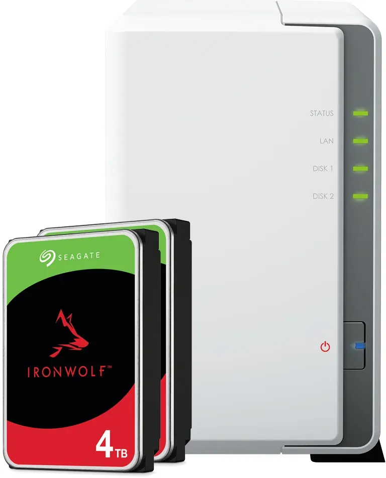 Kategorie: NAS Server - Synology - GTIN:4260730617640 - Synology DiskStation DS223J 2 Einschübe NAS-Server Leergehäuse + 8TB (2x4TB) Seagate Ironwolf SATA 3.5' HDD Festplatten - 399,00 Euro bei Office Partner GmbH - gefunden von billiger.de Dieses Angebot bietet eine Synology DS223j mit 2x 4TB Seagate IronWolf HDDs zu einem sehr kompetitiven Preis. ![]() ![]() Synology DS223j - 2-Bay NAS eBay + 2x 4TB Seagate IronWolf HDD (8TB) installiert