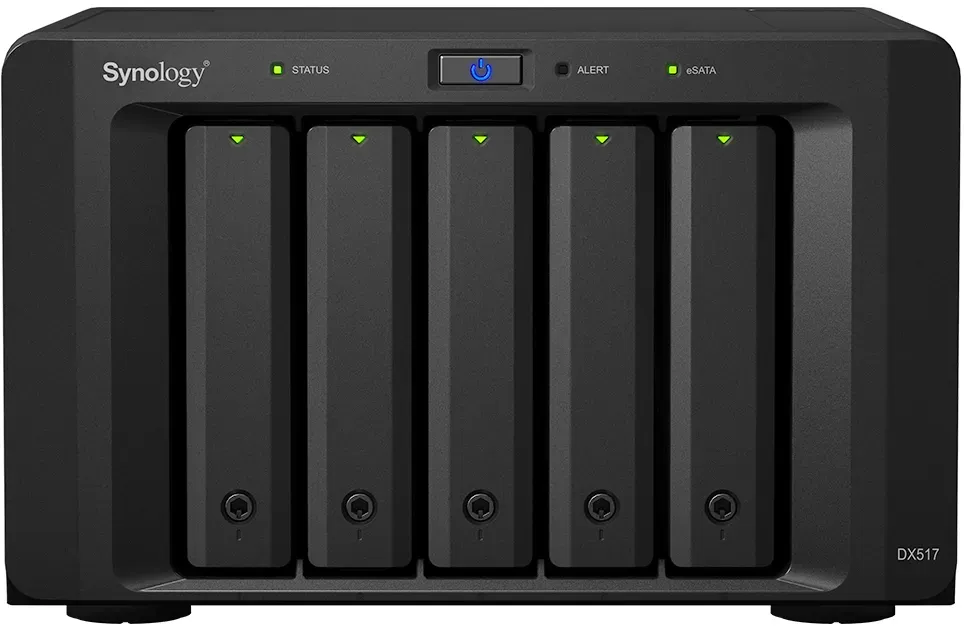 Kategorie: NAS Server - Synology - GTIN:4711174722679 - DX517 Erweiterungseinheit 5-Bay Synology Volume-Erweiterung und Datensicherung Plug-n-Use-Design - 488,00 Euro bei Cyberport - gefunden von billiger.de billiger.de listet die Synology DX517 Erweiterungseinheit zum attraktiven Preis von 488 Euro. ![]() ![]() Synology DX517 Erweiterungseinheit