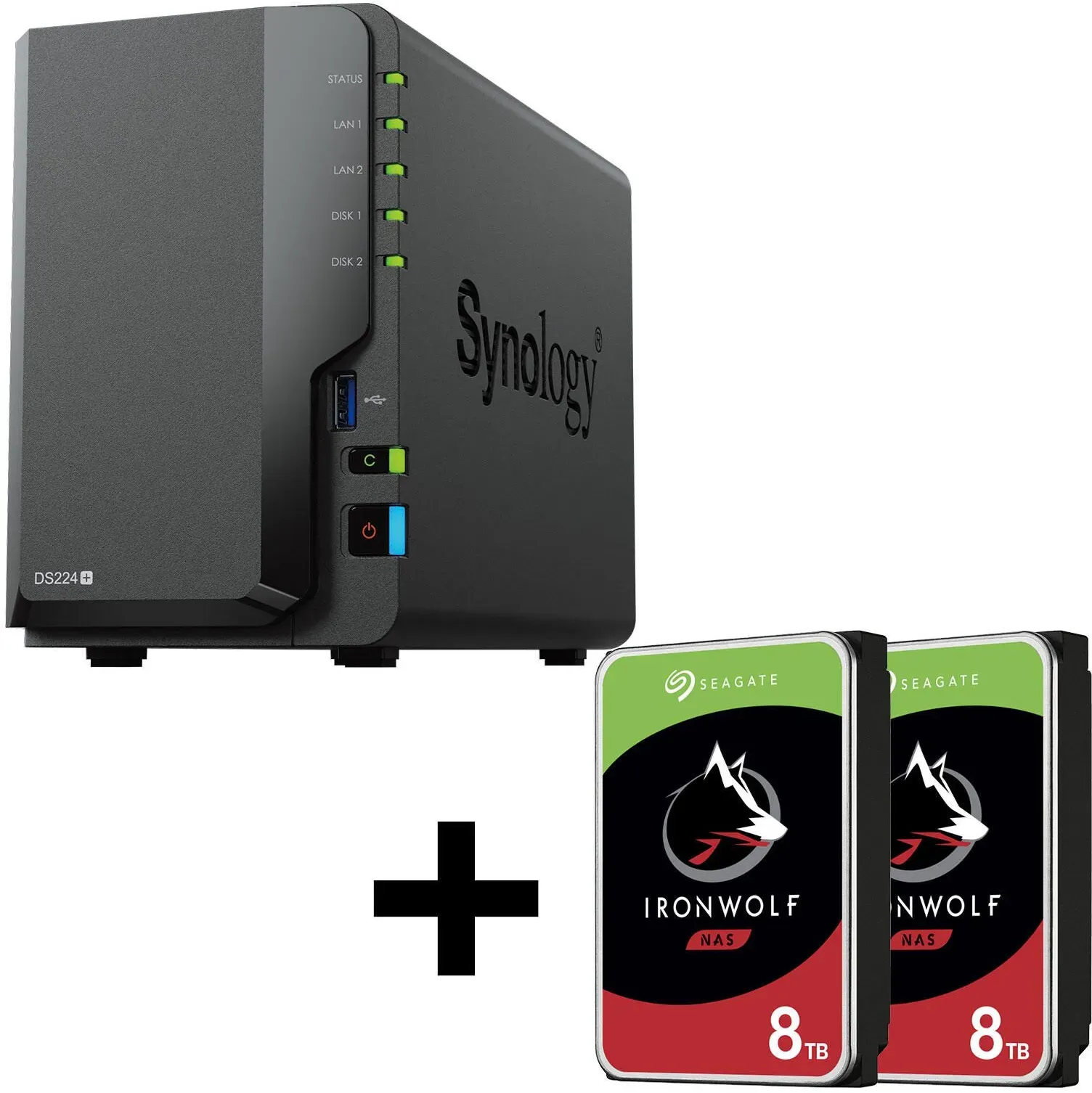Auf Lager, sofort versandfertig Lieferzeit 1-2 WerktageSynology DiskStation DS224+ 2 Einschübe NAS-Server Leergehäuse + 16TB (2x8TB) Seagate Ironwolf SATA 3.5" HDD Festplatten