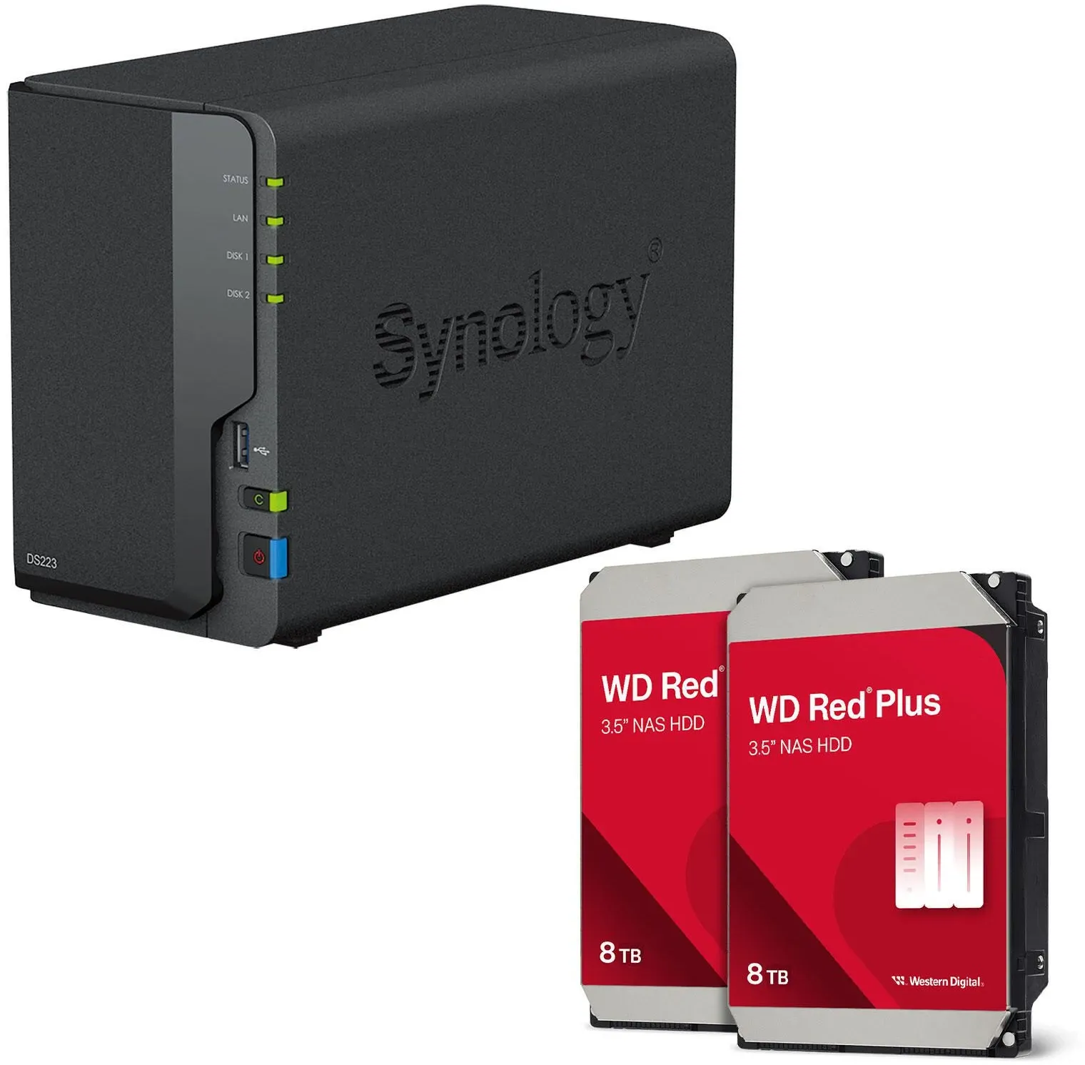 Lieferbar, Lieferzeit 1-3 WerktageSynology DiskStation DS223 2 Einschübe NAS-Server Leergehäuse + 16TB WD Red SATA 3.5" HDD Festplatten (2x 8TB)