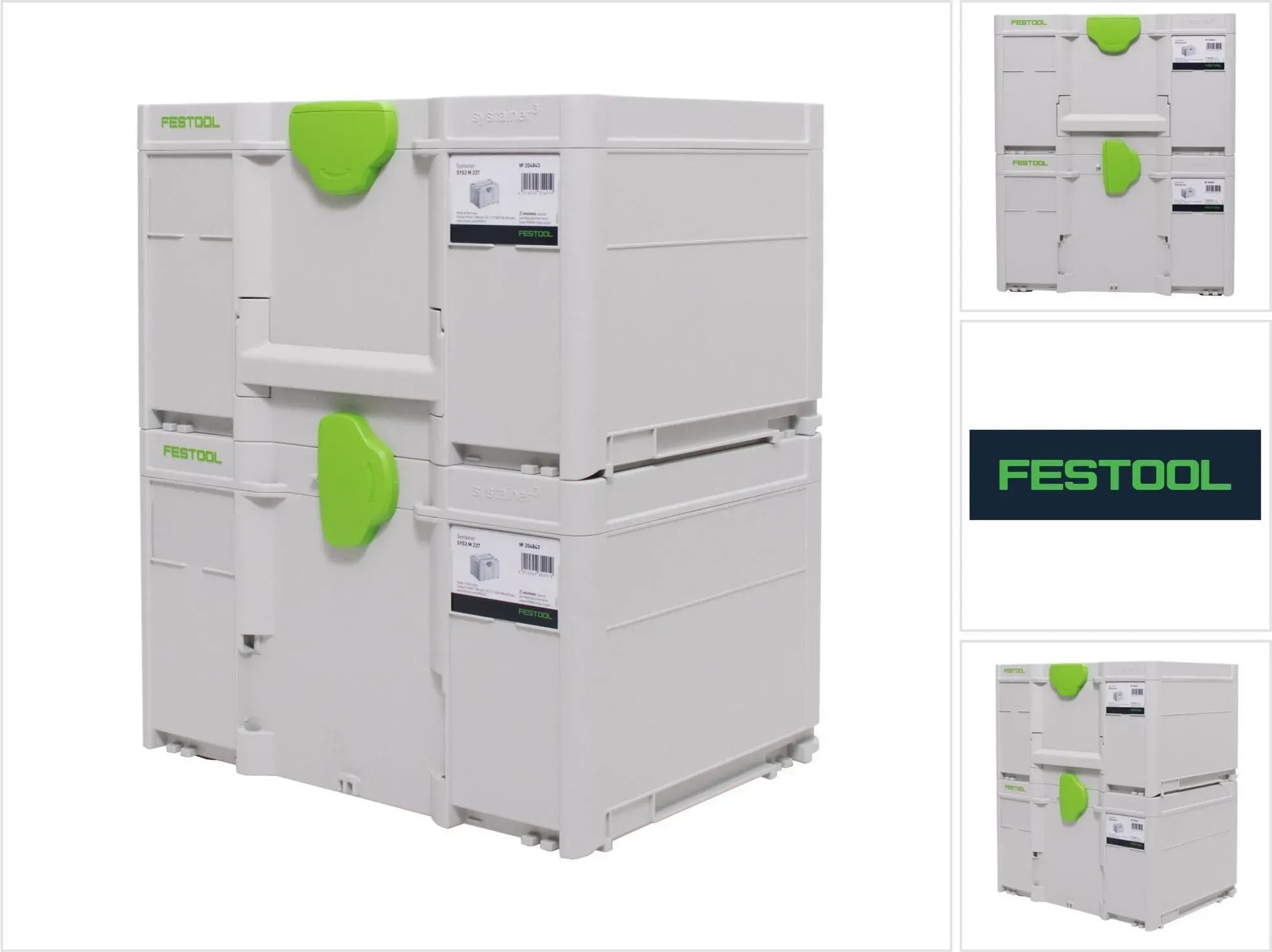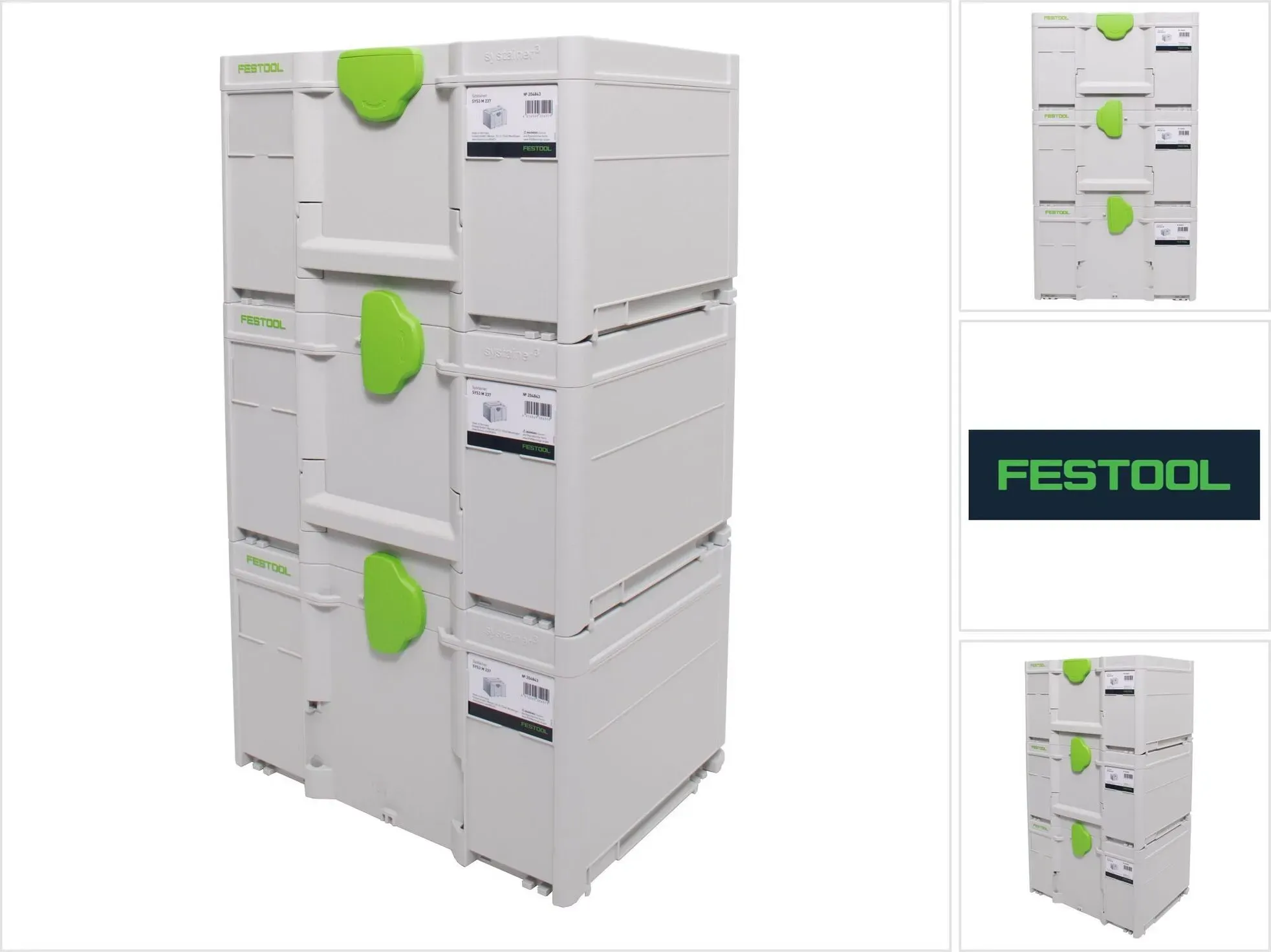 3 Händlerangebote bei billiger.de - Kategorie: Werkzeugkoffer - Festool - ' Lieferumfang: - 2x Festool Systainer SYS3 M 237 ( 204843 ) Produktbeschreibung: Produktbeschreibung: Festool hat mit der neuen Generation der Systainer Koffer noch mehr Mobilität geschaffen. Die Kooperation von Festool, TANOS und bott bringt den Heimwerker, die Werkstatt und die Baustelle zusammen. Dank der perfekten Integration in die bott vario3 Fahrzeugeinrichtung haben die Systainer die gewohnte Ordung und eine einfache Handhabung. Die Verarbeitung ist wie gewohnt perfekt und extrem robust, dass zeigt unter anderem die Traglast von 20 kg bis 40 kg. Auch über die Deckellast muss man sich keine Sorgen machen, diese beträgt 100 kg. Selbstverständlich sind die neuen Systainer Koffer untereinander kompatibel und auch alle voherigen Systainer sind zu 100 Prozent koppelbar. Der neue ergonomische Tragegriff an der Front, die praktische Auszugshilfe und das typische Koppeln \'mit einem Dreh\' sind der absolute Luxus auf den kein Handwerker verzichten sollte. Mit den neuen Systainer Koffern hat Festool bewiesen dass auch Werkzeugkoffer ergonomisch und praktisch sein können. Technische Daten: Herstellernummer: 204843 Abmessung mit Standfüßen (L x B x H): 396 x 296 x 237 mm Innenabmessung (L x B x H): 389 x 275 x 196 mm Volumen: 21,4 l Traglast (einfach): 20 kg Traglast (gekoppelt): 40 kg Zulässige Deckellast: 100 kg Gewicht: 1,9 kg Bei gewerblicher Nutzung beachten Sie bitte die Bauvorschriften! ' - ... Ein praktisches Set aus drei Systainer3 M 237, das eine flexible und erweiterbare Aufbewahrungslösung darstellt. ![]() ![]() Festool Systainer Set 3x SYS3 M 237 ( 3x 204843 ) 21,4 Liter 396x296x237mm Werkzeugkoffer koppelbar