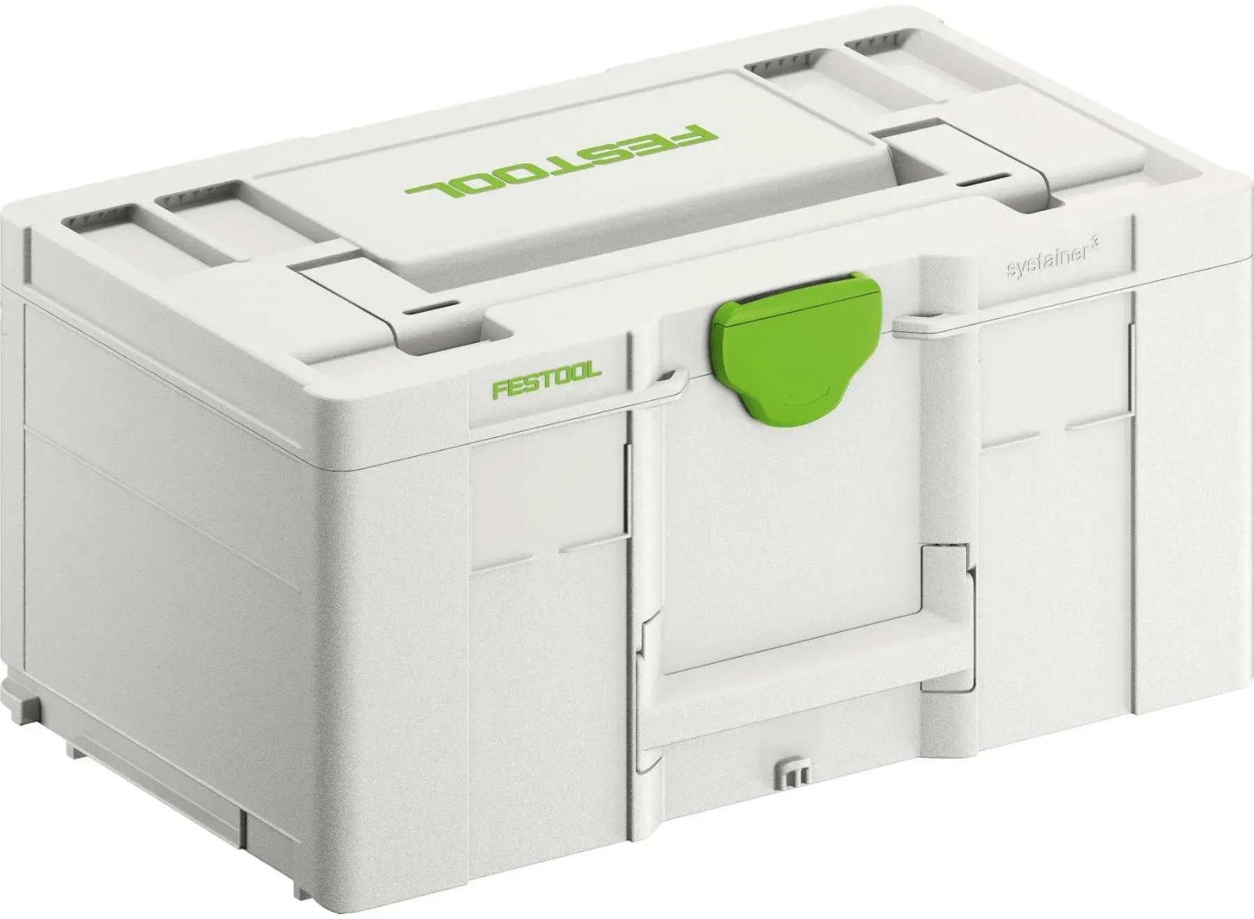 22 Händlerangebote bei billiger.de - Kategorie: Werkzeugkoffer - Festool - Der offene Systainer für schnellen Zugriff. Oben offen, auf das Wesentliche reduziert und ausgelegt für den schnellen Zugriff auf Handwerkzeug, Verbrauchsmaterial und Zubehör. Und perfekt passend zum Systainer-System: Systainer3 ToolBoxen sind untereinander sowie mit allen Systainer-Generationen und Absaugmobilen koppelbar. Geräumiges Fach und einklappbarer Tragegriff für schnellen Zugriff Robuste Bauweise aus hochwertigem Kunststoff - für bis zu 20 kg Tragkraft Dank T-LOC koppelbar mit dem Systainer-System Mit breiterer Grundfläche für noch mehr Platz Zum praktischen Transport von Handwerkzeug, Verbrauchsmaterial oder Zubehör Anwendungsschwerpunkte Generationsübergreifend untereinander koppelbar Kompatibel mit Transportsystemen sowie Absaugmobilen Ermöglichen Ordnung, übersicht und professionelles Auftreten - GTIN:4014549355299 Dieser Systainer bietet mehr Volumen als die M-Variante und ist eine gute Wahl für größere Werkzeuge oder mehr Zubehör. ![]() ![]() Festool Systainer3 SYS3 L 237
