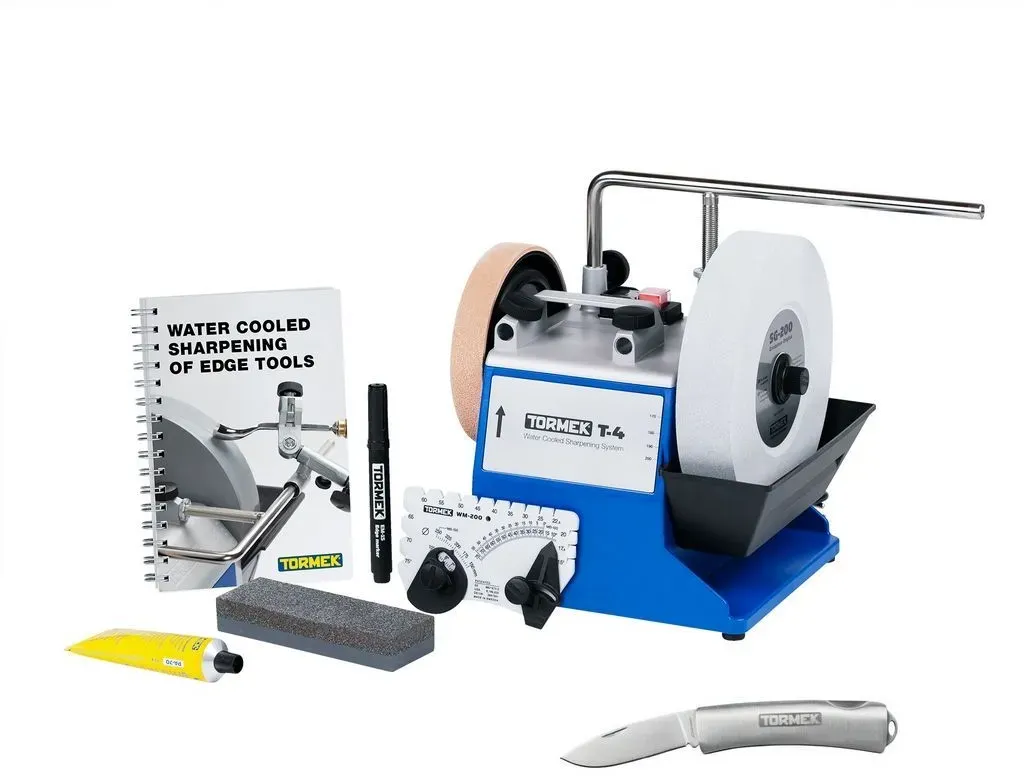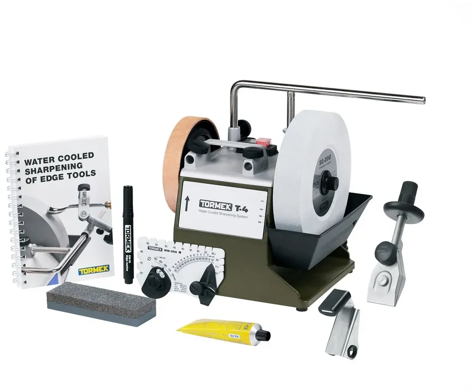 5 Händlerangebote bei billiger.de - Kategorie: Sonstige Schleifmaschinen - Tormek - Beschreibung:Tormek T-4: DIE TORMEK T-4 ist eine Weiterentwicklung des Modells T-3 welche die Präzision und Stabilität auf ein völlig neues Niveau bringt. Wichtige Funktionen, wie Motor und Hauptwelle, sind im gegossenem Oberteil montiert, auch die Buchsen für die Universalstütze sind integriert. Dies ergibt eine unschlagbare Präzision für die Universalstütze, die als Basis aller Tormek Vorrichtungen dient. Sie erhalten eine hochwertige Maschine, ideal für Haus und Hobby, welche alle gängigen Schneidwerkzeuge schleifen kann.Bitte Beachten! Technische Spezifikationen sind für Deutschland gemacht und die gesamte Dokumentation ist in Deutsch. EM-Kantenmarker Der neue EM-15 Schneidenmarkierer gehört jetzt zum Lieferumfang der Tormekt T-4 Original. Es handelt sich um einen hochwertigen Permanentmarker zum Einfärben der Fase beim Einstellen des Schneidenwinkels. Die Tormek Marker-Methode ist ein schnelles und einfaches Verfahren zur Feststellung des vorhanden Schneidenwinkels verschiedener Werkzeug.Beschreibung:SE-77: Mit der Vorrichtung für gerade Schneiden SE-77 ist es einfach, diese so einzustellen, um Ihre Stemmeisen und Hobeleisen mit einer rechtwinkligen Schneide zu schärfen. Das Design gibt Ihnen die besten Voraussetzungen für das erfolgreiche Schärfen mit höchster Präzision des Endergebnisses. Sie können die Vorrichtung auch für eine leicht konvexe Form eingestellt. ... Die Tormek T4 Bushcraft ist speziell für Outdoor- und Jagdwerkzeuge konzipiert und bietet eine robuste Lösung für diese Anforderungen. Holz- metall.inf o