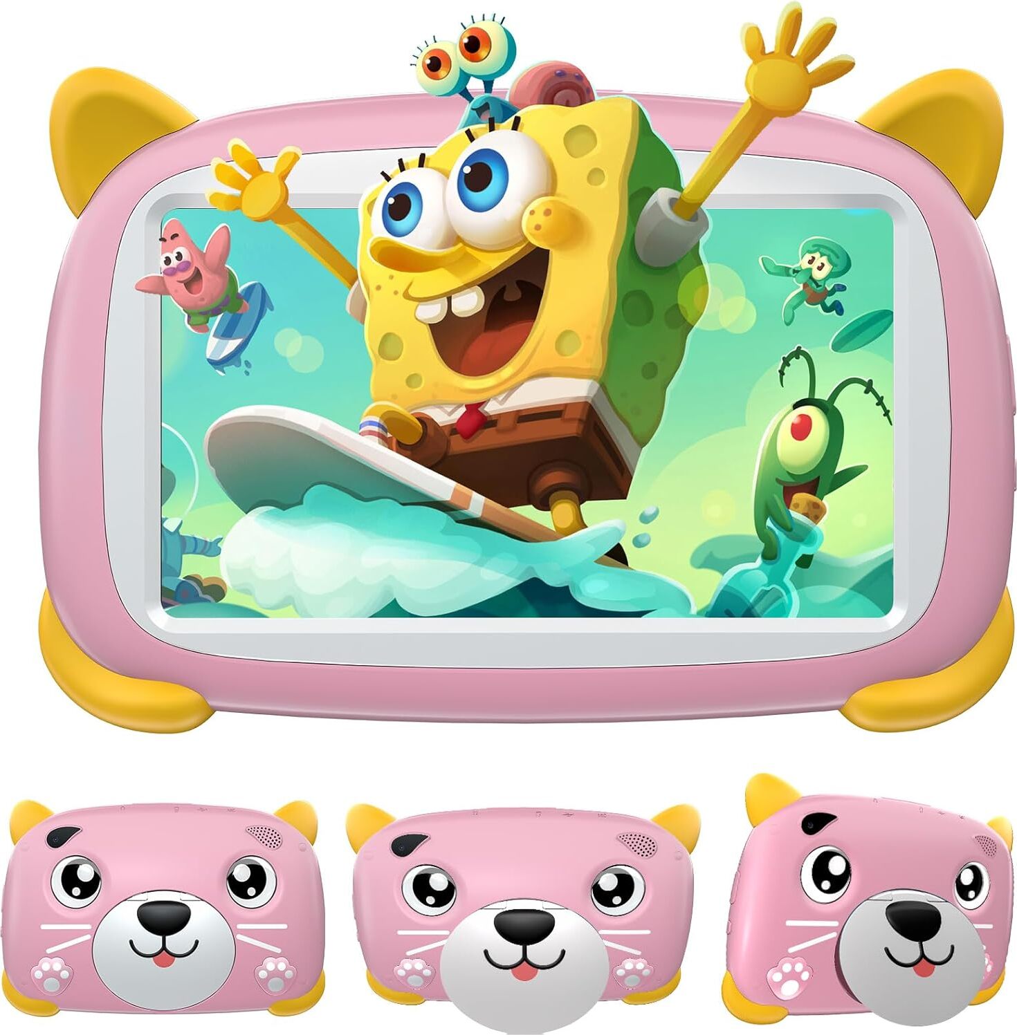 lieferbar-in 3-4 Werktagen bei dirBUFO 7-Zoll Android13 5GB+32GB icherheitskoffer für Spiel und Lernen Kinder Tablet (7", 32 GB, Android, WiFi, Kinder Tablet) rosa