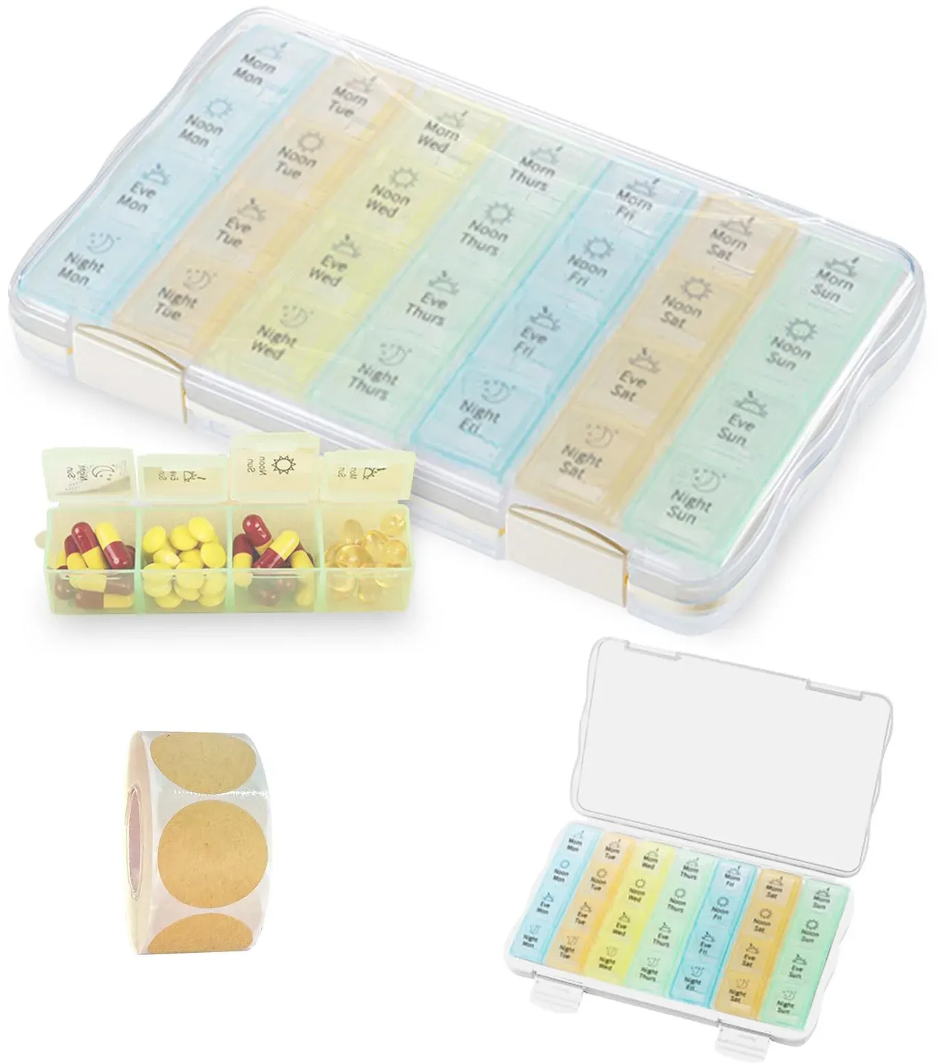 Verfügbarkeit: Auf Lager - Kategorie: Nahrungsergänzungsmittel - vinest - Packliste Sie erhalten eine Aufbewahrungsbox mit 7 exquisiten, farbenfrohen tablettenbox, jede mit 3 kleinen Fächern im Inneren, um die drei Zeiten am Tag, morgens, mittags und abends, für Ihre Pillen zu erfüllen. Verwenden Sie unsere kleine pillendose, um Ihre Pillen 3 mal am Tag einfach und bequem zu verwalten. Sicheres MaterialUnser medikamentenbox ist aus lebensmittelechtem PP-Material, egal recycelt oder verbrannt sind im Einklang mit den ökologischen Anforderungen, ungiftig, geruchlos und harmlos, glänzend und strukturiert, bequem und langlebig, sicher und sicher für den täglichen Gebrauch. Trocken HaltenDer robuste Pillenbox-Organizer und die separate interne tablettenbox klein halten Ihre Pillen trocken und sicher. Sie müssen sich keine Sorgen machen, dass Ihre Pillen verschüttet werden, wenn die pill box in Ihrer Tasche platziert wird, um sicherzustellen, dass Ihre Pillen ordentlich organisiert sind. Einfach zu BedienenUnsere tabletten organizer Verschluss der Sicherheitsschnalle Design, um die Stärke der moderaten, interne Fächer öffnen Winkel von bis zu 180 °, einfach zu öffnen und zu speichern Tabletten, um Ihre Erfahrung zu erfüllen, nicht mehr schwierig, die tägliche Medizin Organisator und Not zu öffnen. [Multi-Szenario-AnwendungDie medikamenten organizer ist leicht und tragbar, so dass Sie sie auf Geschäftsreisen oder Reisen mitnehmen können, oder sie für ... Diese Tablettenbox für 8,99 Euro kommt mit einer stilvollen PU-Ledertasche und bietet 3 Fächer pro Tag, ideal für Medikamente und Nahrungsergänzungsmittel. ![]() ![]() Zocipro Tablettenbox 7 Tage 3 Fächer,Tablettenbox 7 Tage Morgens Mittags Abends, Feuchtigkeitsbeständigem Design & PU-Ledertasche, für Medikamente, Vitamine, Fischöl, Nahrungsergänzungsmittel usw