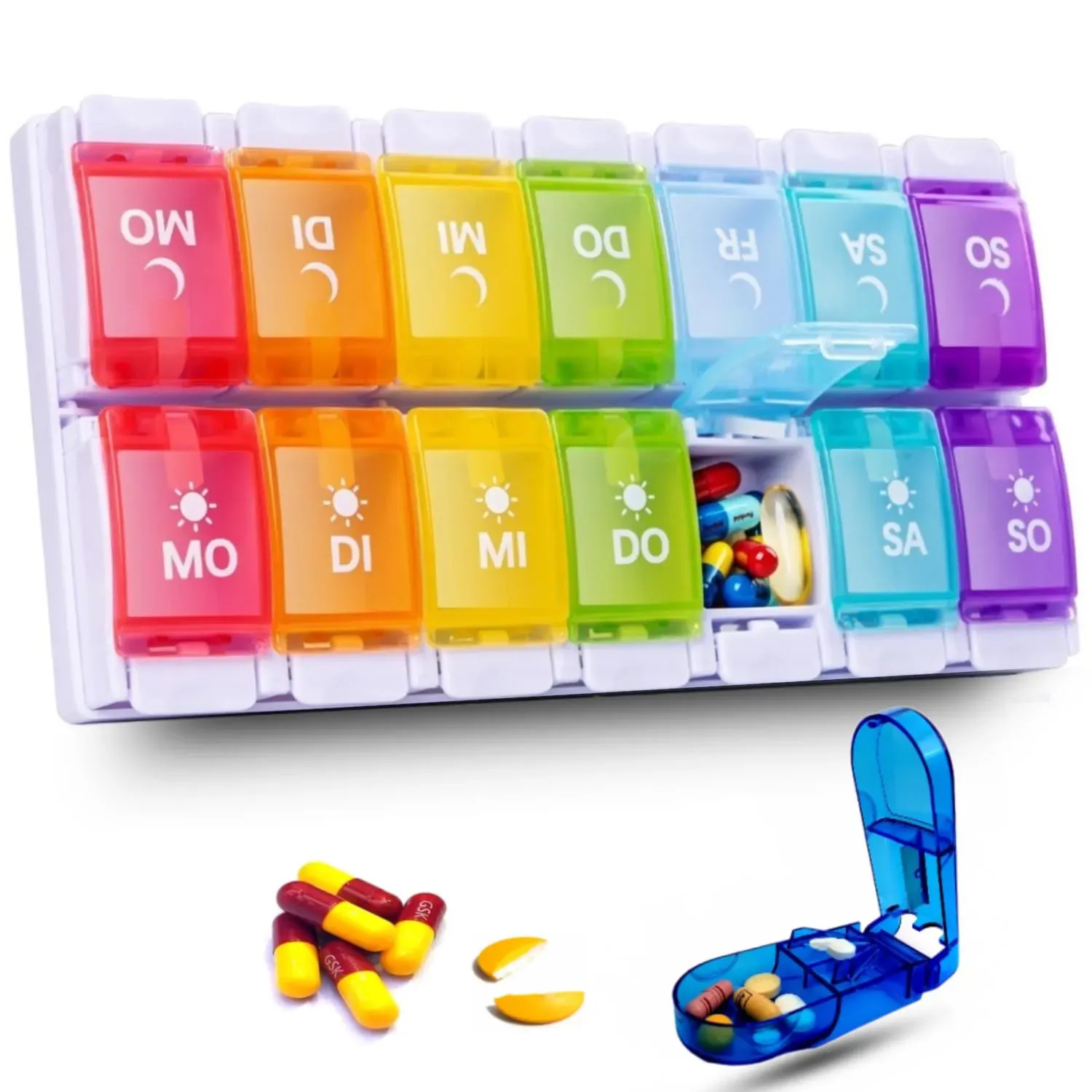 Beliebte Marken und Modelle sind z. B. die Wundmed Rainbow Tablettenbox 7 Tage 4 Fächer, der Medi-7 Medikamentendosierer, die Relaxdays Tablettenbox 7 Tage 4 Fächer und der Sensly Abziehbare Pillendosierer[1][3]. Der Preisbereich für 7-Tage-Tablettenboxen liegt meist zwischen etwa 3,50 € und 20 €, abhängig von Material, Größe und Ausstattung. Einfachere Modelle starten ab ca. 3,50 €, während hochwertigere oder mit mehr Funktionen ausgestattete Boxen bis etwa 20 € kosten können[1][3][5]. Für eine gezielte Produktsuche können Sie folgende Beispiele direkt im Meta-Preisvergleich prüfen: