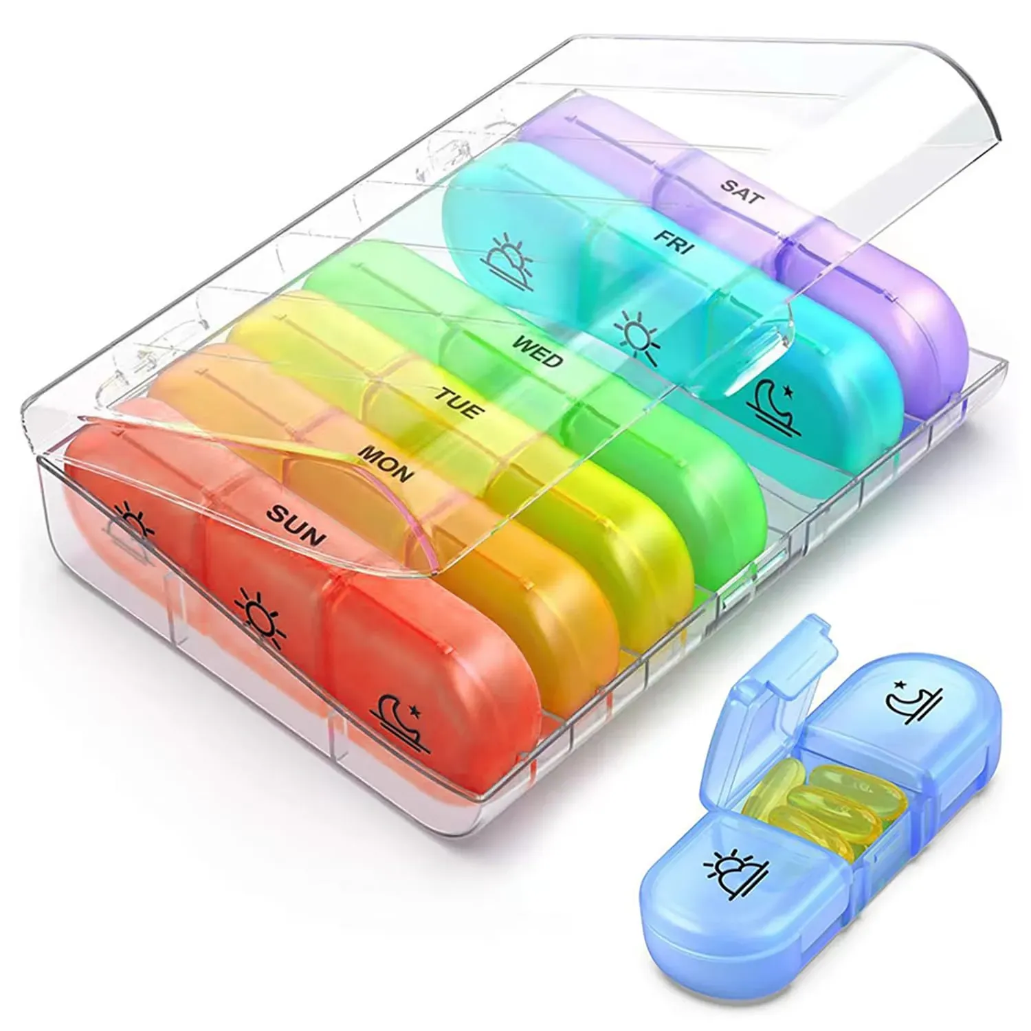 Verfügbarkeit: Auf Lager - Kategorie: Medizinischer Bedarf - quyueug - GTIN:0607605262545 - 7-Tage-Medikamentenverfolgung: Jede Pillendose verfügt über 7 klar gekennzeichnete Fächer (Montag bis Sonntag), die eine präzise Verwaltung der täglichen Medikamenteneinnahme ermöglichen. Verabschieden Sie sich von falschen Dosierungen oder vergessenen Einnahmen! Praktisches zweifarbiges Design: Das Design in Schwarz und Weiß dient nicht nur zur Aufbewahrung von Medikamenten, sondern auch zur Unterscheidung zwischen morgendlichen und abendlichen Medikamenten oder zwischen verschreibungspflichtigen Medikamenten und Nahrungsergänzungsmitteln. Tragbares Design, ideal für Reisen: Diese Medikamentenbox ist leicht und kompakt und passt problemlos in Handtaschen, Koffer oder Taschen. Sie ist der ideale Begleiter für Sporttaschen, das Büro oder internationale Reisen. Langlebiges Material: Dieser Tabletten Organizer besteht aus lebensmittelechtem Kunststoff (BPA-frei) mit einer glatten Oberfläche, die kratzfest, schmutzabweisend und feuchtigkeitsbeständig ist und die Frische und Hygiene der Tabletten gewährleistet. Benutzerfreundliches Design für alle Altersgruppen: Er lässt sich mit einem leichten Druck öffnen und hat keine kleinen Knöpfe oder komplizierten Teile, sodass er auch für ältere Menschen, vielbeschäftigte Eltern oder Personen mit eingeschränkter Handfunktion leicht zu bedienen ist. - 4,29 Euro bei Amazon Marketplace Health & Personal Care - gefunden von ... Für nur 4,49 Euro erhalten Sie hier eine farbenfrohe Regenbogen-Tablettenbox, die sich gut für Reisen eignet. ![]() ![]() Tablettenbox 7 Tage Pillendose 7 Tage Regenbogen Tablettendose 7 Tages Pillenbox Tabletten Organizer Tabletten Wochenbox Medikamentenbox Mini-Pillensortierer Für Reisen