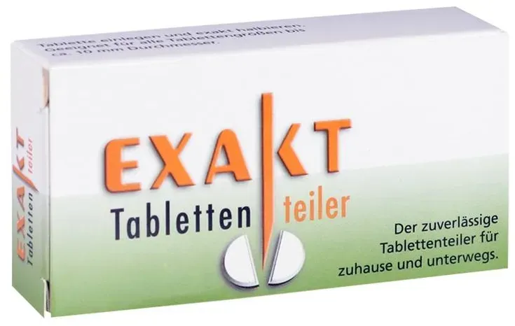 Zustand: Neu - Tablettenspender Persönliche Tablettenspender - EWANTO - HA-29 - EAN: 8438552355842 - Praktischer Tablettenteiler/Tablettenspalter Einfache Zerteilung ohne Kraftaufwand stabiles Gehäuse aus Kunststoff Edelstahl-Klinge kompakte Größe: 80 x 40 x 16 mm Die maximalen Abmessungen für Tabletten lauten: 24 mm x 19 mm x 11 mm - Verkäufer: EWANTO GmbH im amazon.de Marketplace Der EXAKT Tablettenteiler ist eine bewährte Marke und bietet eine zuverlässige Leistung zu einem moderaten Preis. ![]() ![]() cooper consumer health EXAKT Tablettenteiler