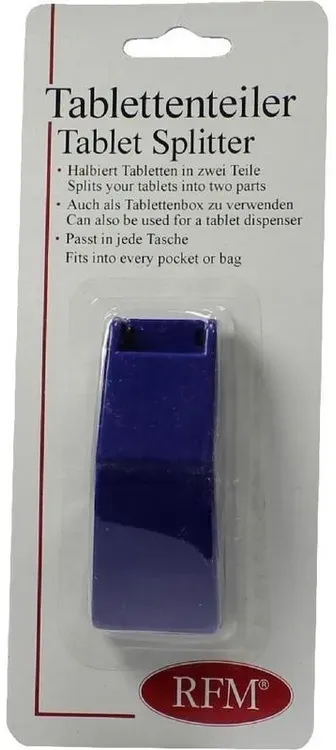 20 Händlerangebote bei billiger.de - Kategorie: Arzneimittel - Rehaforum - Tablettenteiler 'Rehaforum', blau, 1 St. Dieser Teiler halbiert Tabletten in zwei Teile und kann zusätzlich als Tabletten-Box verwendet werden. Er passt in jede Tasche. - GTIN:4041314000146 - PZN:07693101 Dieser Tablettenteiler bietet eine Edelstahlklinge für präzises Teilen und ist dabei sehr erschwinglich. ![]() ![]() EWANTO Tablettenteiler Tablettenspalter Pillenschneider mit Edelstahlklinge weiß