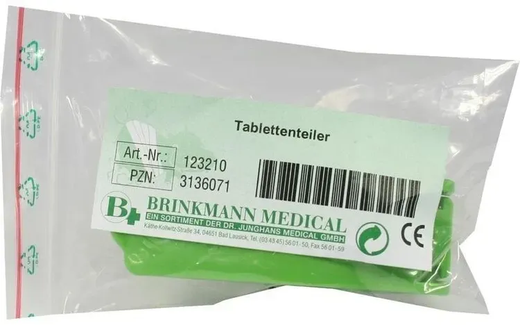 19 Händlerangebote bei billiger.de - Kategorie: Arzneimittel - CareLiv - Der #NAME # wird zur einfachen und exakten Zerkleinerung von Tabletten angewendet. Der Teiler besteht aus bruchfestem Kunststoff und einer besonders scharfen Klinge. DieTabletten rutschen beim Teilen mit der Hand oder anderen Hilfsmittel, wie zum Beispiel einem Messer häufig weg, zerbröseln oder die Stücke werden unterschiedlich groß. Unterschiedliche Größen der Tablettenteile können im schlimmsten Falle zu einer Unter- oder überdosierung, sowie zu einem Therapieverlust führen. Der #NAME # kann die Tabletten ohne Kraftaufwand schnell und kinderleicht in gleich große Teile spalten. - GTIN:4150030986952 - PZN:03098695 Dieser Brinkmann Tablettenteiler ist eine sehr preiswerte und funktionale Option für den einfachen Gebrauch. ![]() ![]() Brinkmann Tablettenteiler