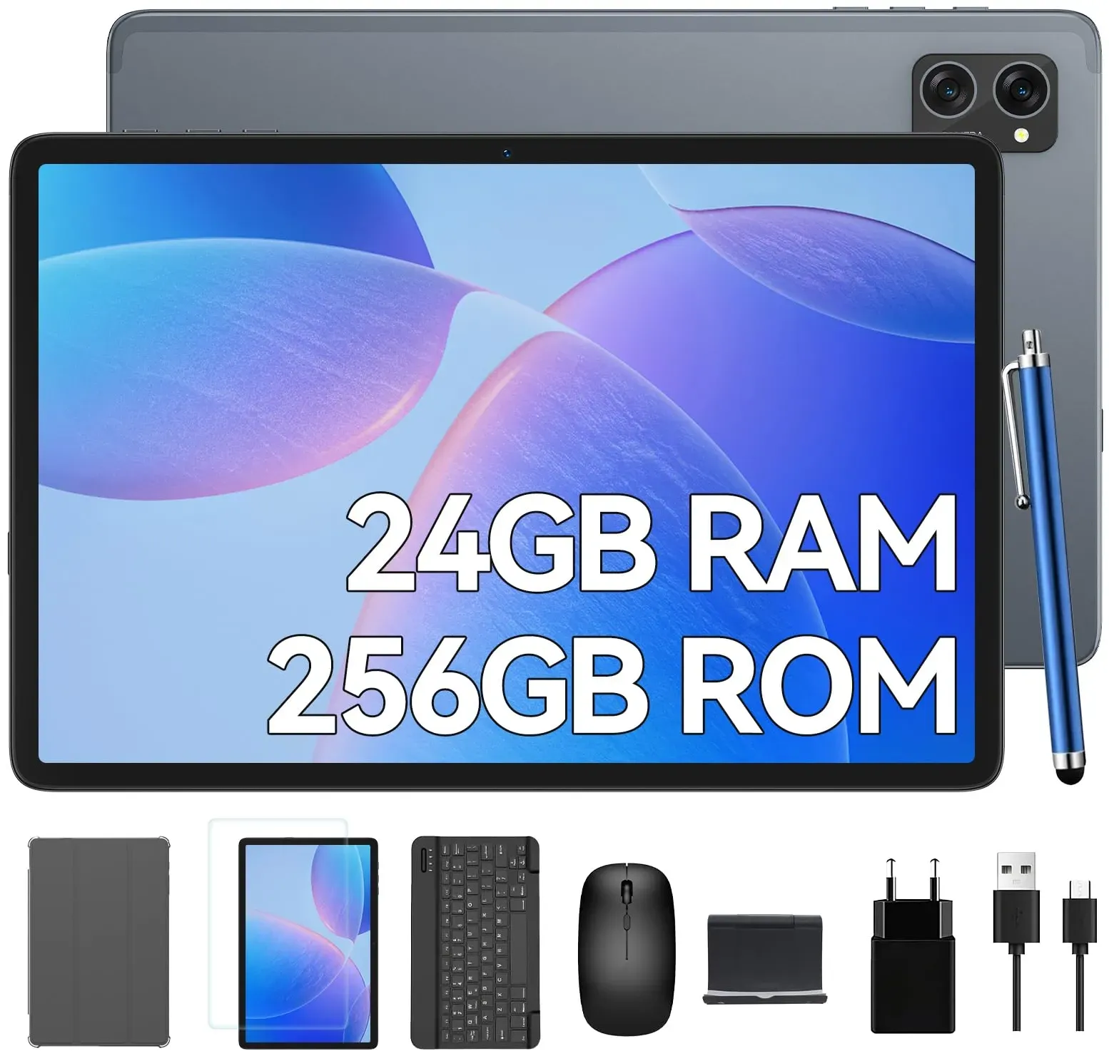 lieferbar-in 2-3 Werktagen bei dirbesttab TABWEE T20 10" Android 15 256GB WiFi Set Tablet (10", 256 GB, Android 15, Android 15, mit Stift/Maus/Tastatur, Gemini Al Magic) grau