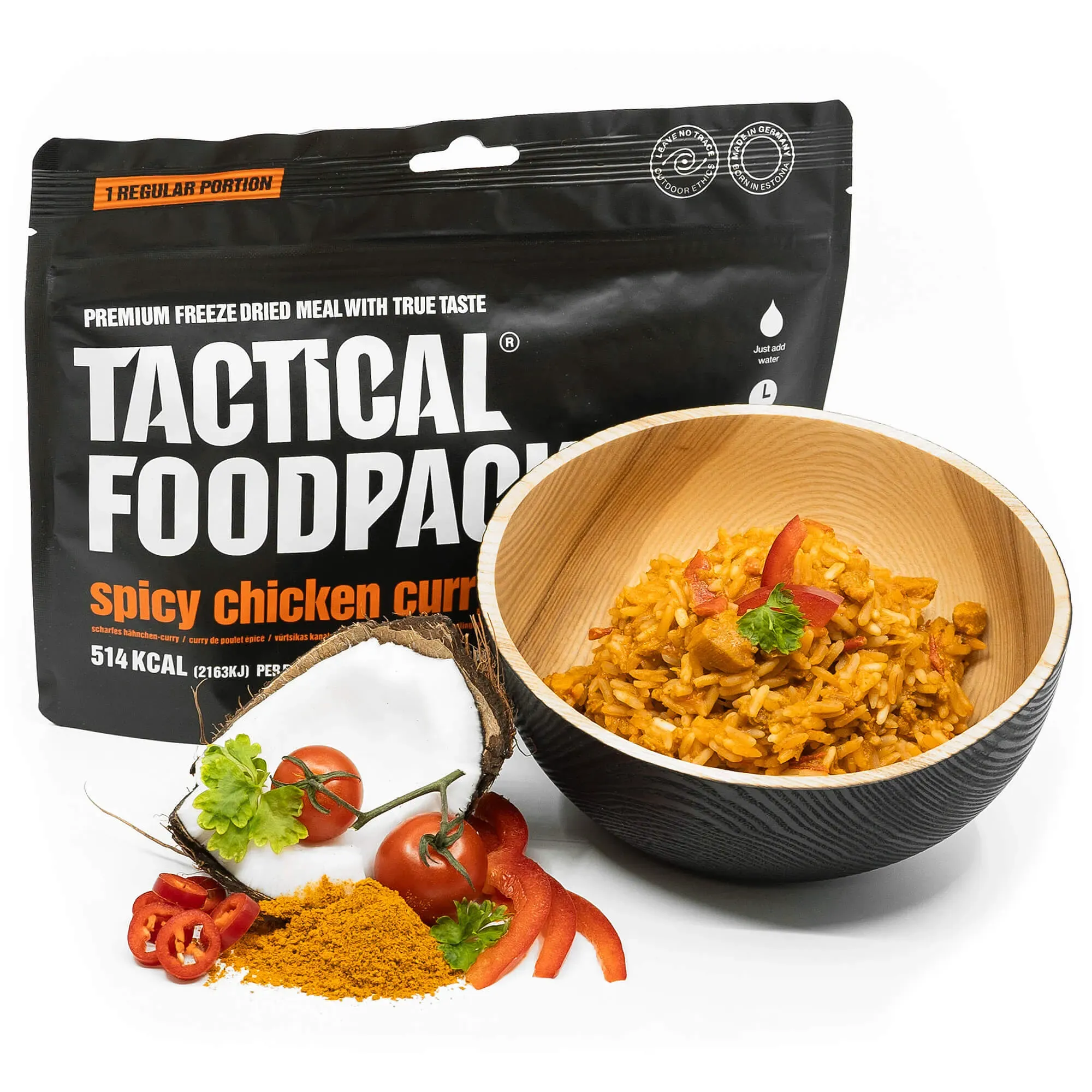 Hauptgerichte Sonstige - EAN:4744698010717 - Die Tactical Foodpack Pilzpasta mit Spinat bringt Dir eine ausgewogene, vegetarische Mahlzeit mit vollem Geschmack - ideal für unterwegs, Einsätze oder Notvorrat. Die Kombination aus zarten Champignons, cremiger Pasta und feinem Spinat sorgt für eine harmonische, sättigende Komposition, die ganz ohne künstliche Zusätze auskommt. Das Gericht besteht aus 100€¯% natürlichen Zutaten und ist frei von Konservierungsstoffen oder Geschmacksverstärkern. Es liefert Dir wertvolle Energie und Nährstoffe - perfekt nach langen Touren oder bei anspruchsvollen Einsätzen. Die Zubereitung ist denkbar einfach: Gib heißes oder kaltes Wasser direkt in den Beutel, umrühren, ziehen lassen - fertig! Das Gericht kann direkt aus dem Beutel gegessen werden, was es besonders praktisch für unterwegs macht. Mit geringem Gewicht und kompaktem Packmaß passt die Pilzpasta problemlos in Deinen Rucksack. Die lange Haltbarkeit macht sie zu einer verlässlichen Wahl für jede Outdoor-Situation. - gefunden von Kelkoo Das scharfe Hähnchen-Curry ist perfekt für alle, die es gerne würzig mögen. ![]() ![]() Tactical Foodpack Hauptmahlzeit Scharfes Hähnchen-Curry
