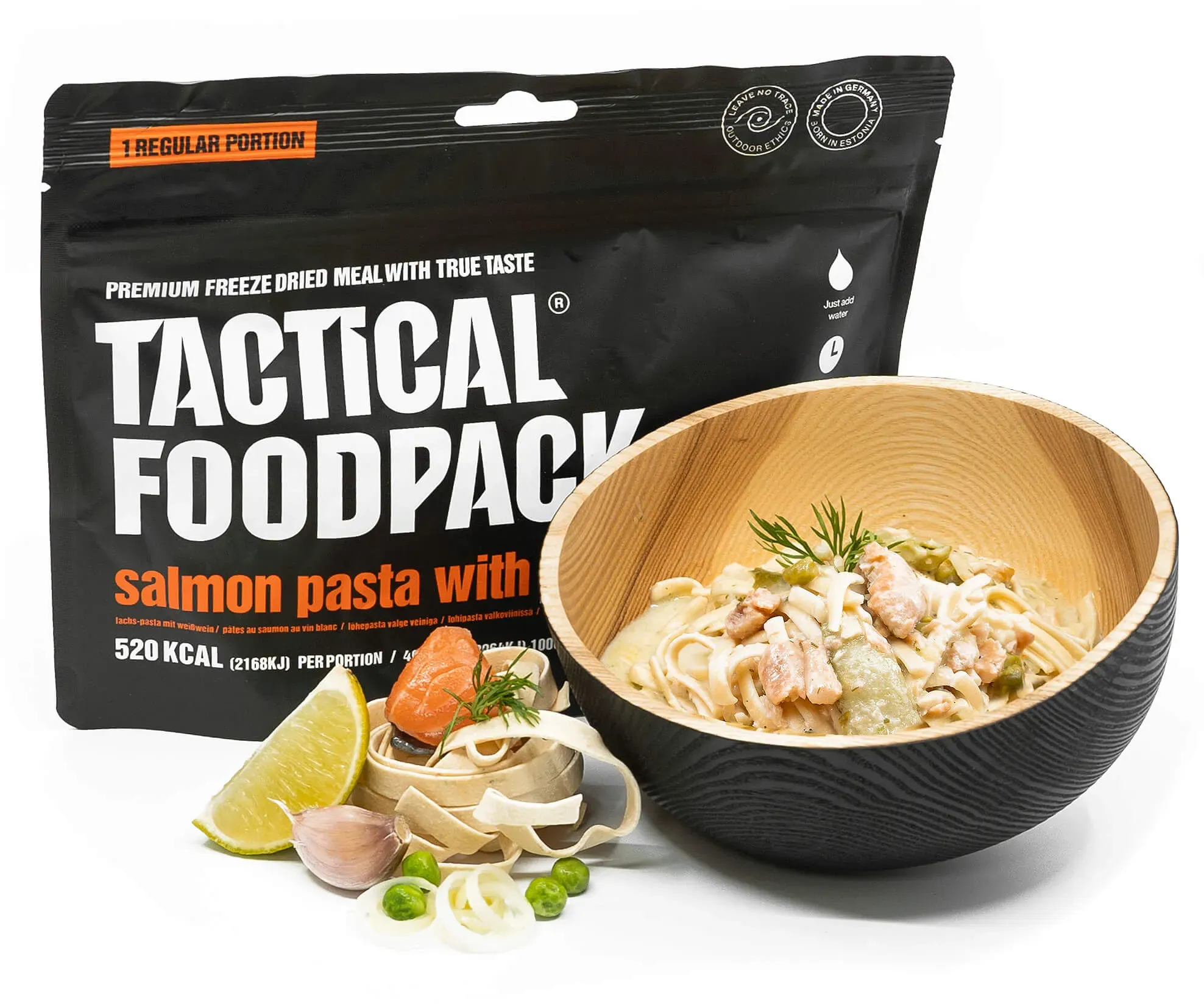 Hauptgerichte Sonstige - EAN:4744698010564 - Das Tactical Foodpack Scharfe Hähnchen-Curry bringt Dir authentischen Geschmack und volle Power - egal ob im Gelände, auf Tour oder in der Notversorgung. Die aromatische Kombination aus zartem Hähnchenfleisch, Gemüse und kräftigen Currynoten sorgt für eine angenehm scharfe, sättigende Mahlzeit. Mit 100€¯% natürlichen Zutaten und ohne Konservierungsstoffe ist dieses Gericht nicht nur lecker, sondern auch verträglich und hochwertig. Es liefert Dir viel Energie und wertvolles Protein - ideal nach körperlicher Belastung oder für lange Tage im Freien. Die Zubereitung ist denkbar unkompliziert: heißes oder kaltes Wasser direkt in den Beutel, umrühren, kurz ziehen lassen - und direkt aus dem Beutel genießen, ganz ohne zusätzliches Geschirr. Durch das geringe Gewicht und die kompakte Verpackung passt das Gericht in jeden Rucksack. Die lange Haltbarkeit macht es zur verlässlichen Wahl für jede Lage - ob Abenteuer oder Krisenvorbereitung. - gefunden von Kelkoo Eine interessante Geschmacksrichtung, die Abwechslung in die Outdoor-Küche bringt und im mittleren Preissegment liegt. ![]() ![]() Tactical Foodpack Hauptmahlzeit Lachs-Pasta mit Weißwein