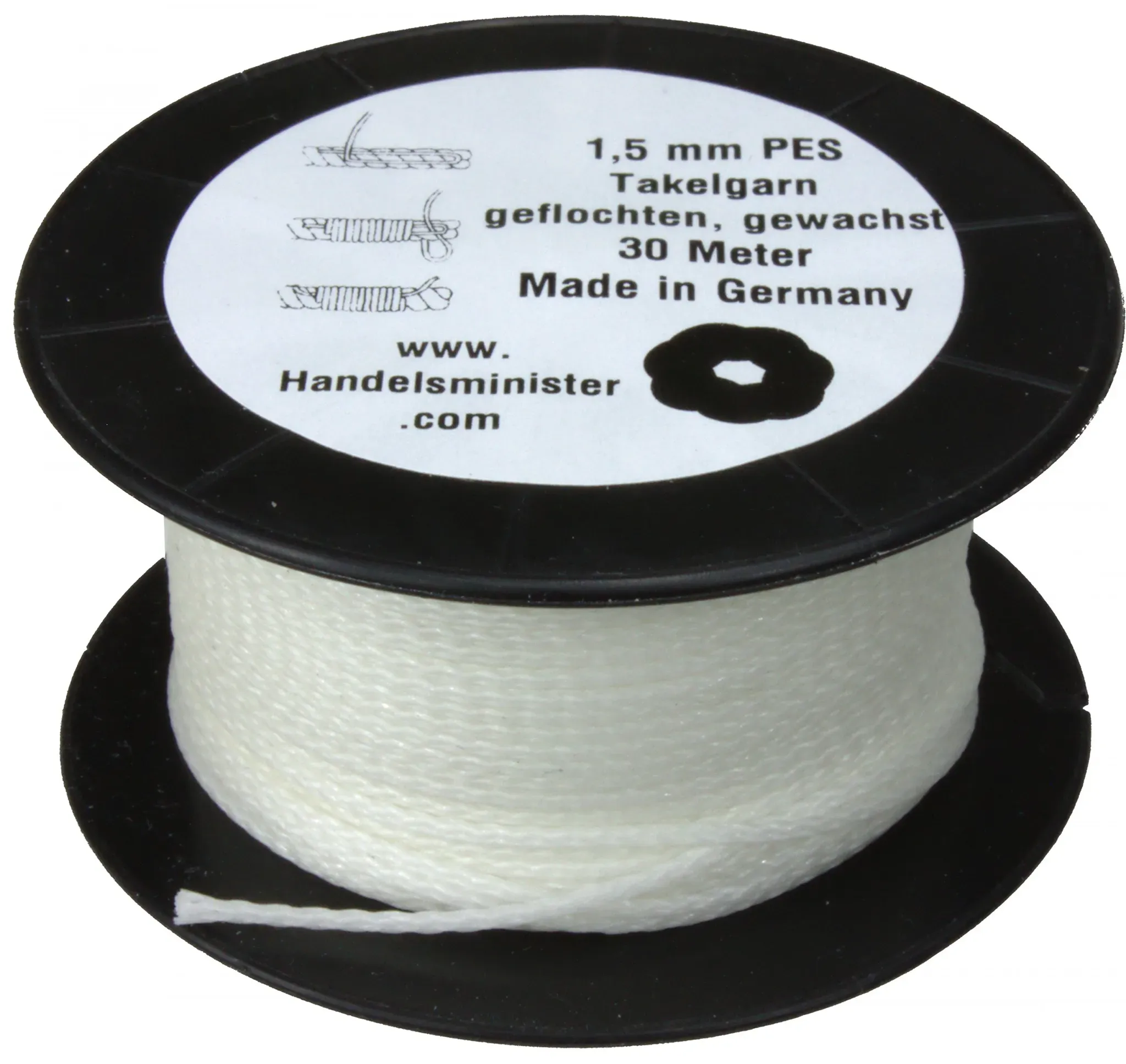 Zustand: Neu - Tauwerk Tauwerk für Boote - Handelsminister.com - 4260501942414_mfn - EAN: 4260501942414 - Technische Daten: Typ: Hohlgeflecht Durchmesser: 1,5mm Material: PES (Polyester) Material-Besonderheit: gewachst - Verkäufer: handelsminister im amazon.de Marketplace ![]() ![]() Handelsminister.com 1,5mm Takelgarn gewachst weiß 30m Spule geflochten PES Polyester