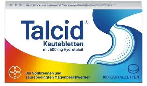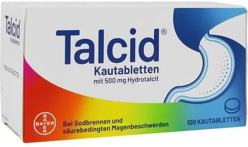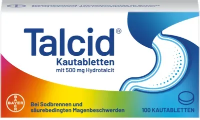 0,24 /Stück - Kategorie: Arzneimittel - Bayer - GTIN:4150019216827 - PZN:01921682 - Wirkstoff: Hydrotalcit Anwendungsgebiete: Zur symptomatischen Behandlung bei Sodbrennen und säurebedingten Magenbeschwerden. - 23,77 Euro bei medikamente-per-klick.de - gefunden von billiger.de ayvita.de verkauft Talcid Kautabletten 100 St für 24,34 Euro, ein wettbewerbsfähiger Preis. ![]() ![]() Bayer TALCID Kautabletten 100 St