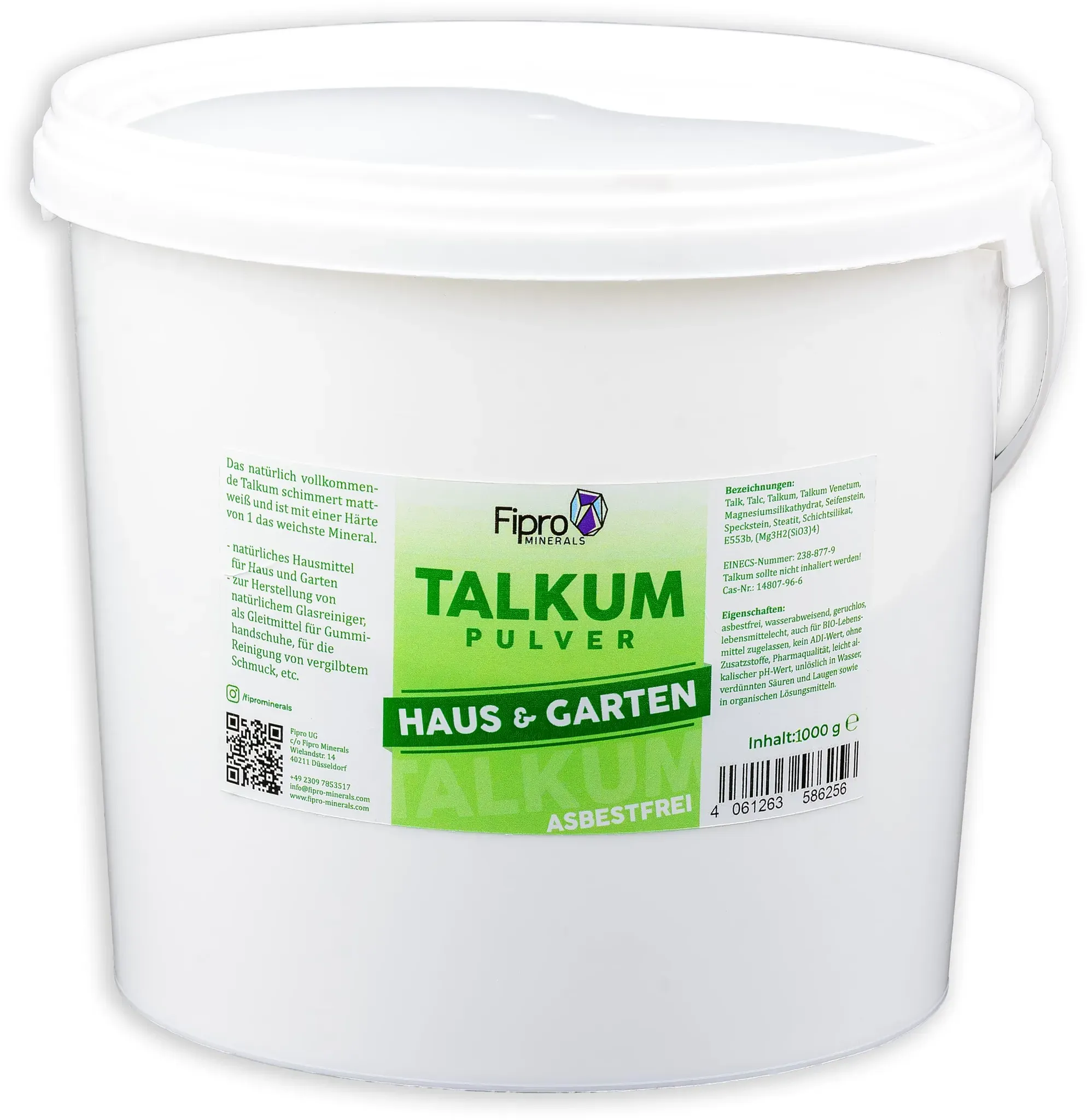Kategorie: Reinigungsmittel - sucelos - GTIN:4061263067069 - TALKUM HAUS & HAUSHALT: Talkum ist ein praktisches Hausmittel und kann beim Herstellen von natürlichem Glasreiniger, als Gleitmittel für Gummihandschuhe, für die Reinigung von vergilbtem Schmuck, Instandhaltung von Gummiteilen und als fettfreies Schmiermittel für Schubladen/Fenster/Schiebetüren eingesetzt werden. TALKUM GARTEN: Als Gartenmittel kann es Ungeziefer bekämpfen, Schädlinge wie Blattläuse von Pflanzen und Bäumen abwehren und Pilzkrankheiten eindämmen. TALKUM TEXTILIEN: Beseitigt öl- und Bierflecken auf sämtlichen Textilien, wirkt effektiv gegen abfärbende Lederhandschuhe und kann helle Mäntel (auch Pelzstücke) wie neu aussehen lassen. 100 % TALK & ASBESTFREI: Unser Talkum ist ein zu 100 % natürliches Mineral, das frei von Zusatzstoffen und unbedenklich für den Körper ist. Das Talkumpulver wurde durch ein Labor auf Asbest überprüft und als asbestfrei zertifiziert. TALKUM SCHUHPFLEGE: Entfernt Fett- und ölflecken auf Lederschuhen und erleichtert das Anziehen von Latex- und Lederprodukten auch als Fußdeo gegen schlechte Gerüche (Schweißfüße) verwendbar. - 13,99 Euro bei Amazon Marketplace Health & Personal Care - gefunden von billiger.de Dieses Angebot bietet eine größere Menge (2,5 kg) zu einem attraktiven Kilopreis, ideal für Vielverbraucher. ![]() ![]() 2,5 kg Talkum Puder im Eimer, Talk Asbestfrei (EUR 6,36 /kg)