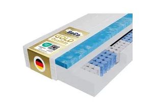 Kategorie: Taschenfederkern-Matratzen - Hilding - GTIN:5901595015675 - Taschenmatratze Flamenco Hilding im Tencel-Bezug Das Modell Flamenco bietet eine stabile und richtige Unterstützung für die Wirbelsäule, unabhängig von der Schlafposition. Zu den Vorteilen dieses Modells gehören seine antibakteriellen Eigenschaften. Der Matratzenkern besteht aus Multipocket-Taschenfedern, die für eine Punktunterstützung auf der gesamten Körperlänge sorgen. Dieser Effekt wird durch dicht angebrachte Federn erreicht, die je nach der Druckstelle einzeln arbeiten. In der Matratze werden auch der Latexschaum und der hochelastische Schaum verwendet. Sie zeichnen sich durch eine hervorragende Luftdurchlässigkeit aus und sorgen damit für eine sehr gute Belüftung des Produkts und minimieren das Risiko der überhitzung des Organismus. Charakteristik zweiseitige Matratze Höhe: 22 cm abziehbarer Bezug antiallergener Latexschaum Bezug waschbar bei 60°C Die Matratze Flamenco ist ein Modell mit zwei Nutzflächen, so dass der Kunde die Seite mit passenden Eigenschaften wählen kann.Es ist jedoch zu beachten, dass das Härtegefühl subjektiv ist und auch von dem eingesetzten Lattenrost abhängt. Matratze Flamenco - Aufbau Multipocket-Federn: Die Verwendung von kleineren und dichter angebrachten Federn im Vergleich zum standardmäßigen Federkern gewährleistet eine stabile Unterstützung für jeden Körperteil, hervorragende Anpassung an die Figur des Anwenders und sichert Komfort und Bequemlichkeit auf dem ... Diese BECO Royal Komfort Gel Matratze für 499.99 Euro bietet Luxusschlaf durch einen Geltopper und TENCELTM-Bezug. ![]() 366994 / DE- Billiger- baur.de Taschenfederkernmatratze BECO 'Royal Komfort Gel - GOLD TFK-Matratze mit Geltopper für Luxusschlaf', weiß, B:140cm H:26cm L:200cm, Bezug: 56% Polyester, 44% Lyocell (TENCELTM). Steppfüllung: 100% Polyester, Matratzen, Taschenfederkernmatratze, Mit integriertem Geltopper, Wendematratze, Ideal auch in 140x200