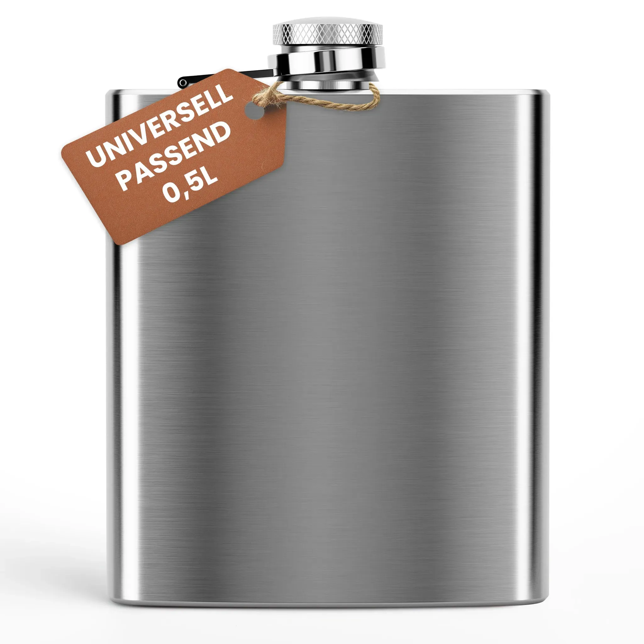 Auf Lager Versand durch Amazon0,5 L Flachmann Trinkflasche aus Edelstahl Silber mit Schraubverschluss - Auslaufsicher mit 500 ml Fassungsvolumen 17x13x3 cm - Mehrweg Schnapsflasche Taschenflasche Halber Liter 16 oz