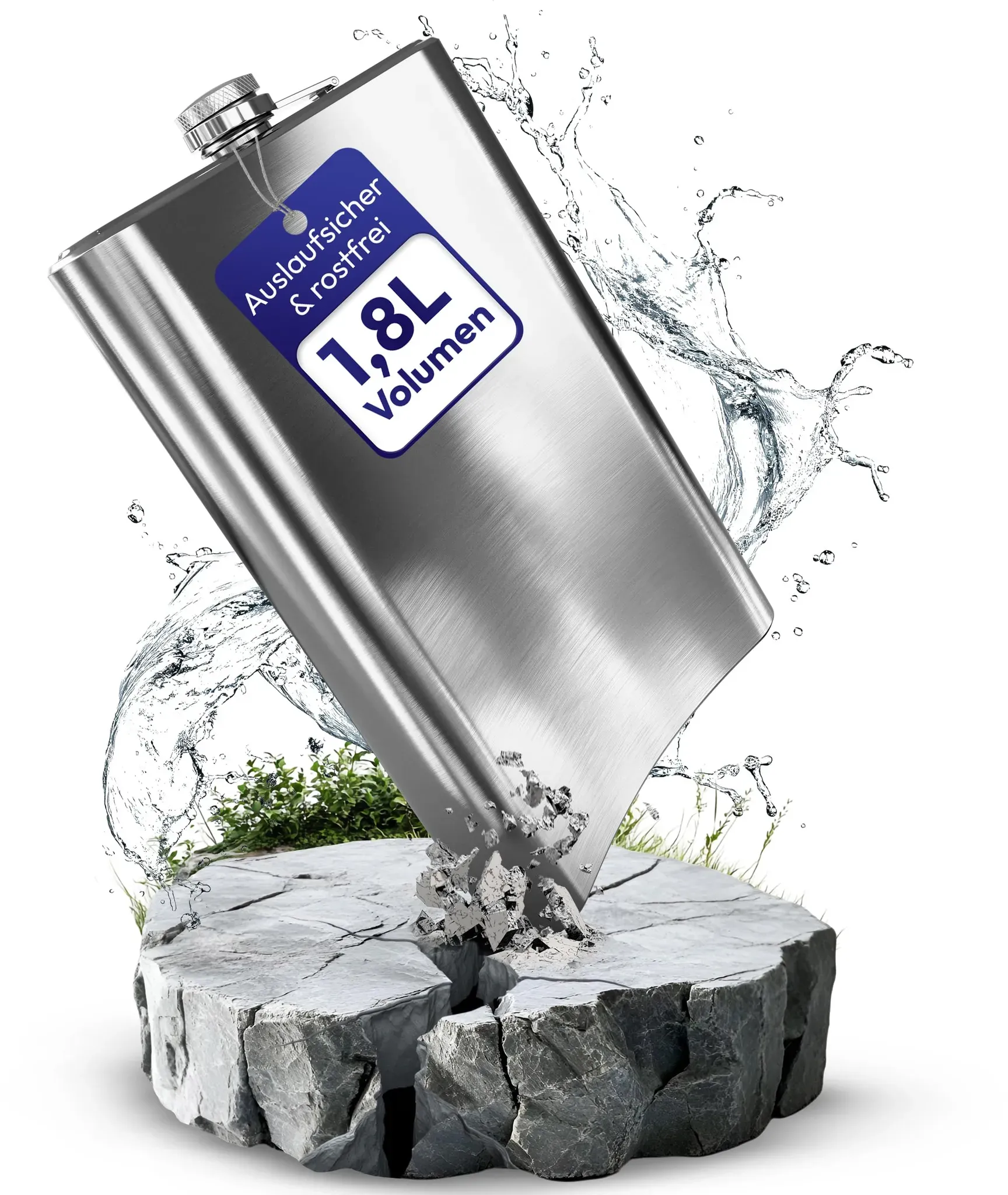 Kategorie: Barzubehör - Oramics - GTIN:4054626075382 - Edelstahl XXL Flachmann 1,8L - Auslaufsichere Riesen Trinkflasche mit Schraubverschluss - Mehrweg Schnapsflasche für Camping, Party & Festivals - Robust & Stilvoll - bruchfeste Taschenflasche 64oz - 24,97 Euro bei Amazon Marketplace Home - gefunden von billiger.de Diese spiegelpolierte Herbertz Taschenflasche aus Edelstahl bietet eine hochwertige Verarbeitung und eine Monogrammfläche. ![]() ![]() Herbertz Taschenflasche - Edelstahl - 177 ml - spiegelpoliert - gesicherter Schraubverschluss - Monogramm Fläche