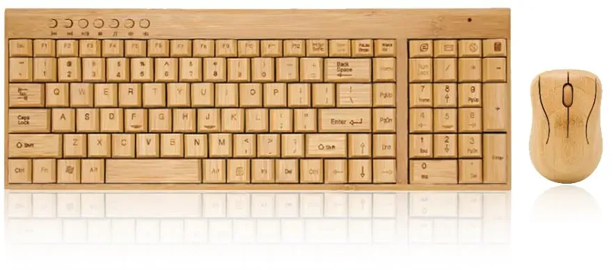 Kategorie: Tastaturen - Goshyda - GTIN:8723836155004 - KüHL UND KOMFORTABEL: Es ist kühl und bequem im Sommer, massieren Sie Ihre Finger, fördern die Blutzirkulation, Mundoberfläche zu absorbieren Schweiß, hemmen das überleben von Bakterien. ANTI STATISCH UND WASSERDICHT: Bambus Aussehen, elegant und warm, weich und natürlich. Anti-Statik, Anti-Strahlung, kann Müdigkeit für Sie zu entlasten. Versiegelte Filmschaltung Design, gute wasserdichte Leistung. PREMIUM LEISTUNG: Aufgrund seiner hervorragenden thermostatischen Eigenschaften und seiner geringen Empfindlichkeit gegenüber statischer Elektrizität kann das Bambusgehäuse die Lebensdauer der elektronischen Komponenten im Inneren der Tastatur besser verlängern als das Eisengehäuse oder das Kunststoffgehäuse. GUTER SCHMUCK-EFFEKT: Kann den Geschmack der Menschen an das Leben und die traditionelle chinesische Kultur befriedigen. Umweltschutz, Sicherheit und Verschmutzung frei. HOHE QUALITäT: Die Buchstaben auf der Tastatur sind gedruckt und werden nicht verblassen. die Tastatur wird nicht knacken, nicht verformen. - 52,16 Euro bei Amazon Marketplace PC Notebook - gefunden von billiger.de Diese kabellose Bambus-Tastatur-Maus-Kombination bietet eine umweltfreundliche und stilvolle Alternative für den Schreibtisch. ![]() ![]() Goshyda Drahtlose Tastatur, Bambus Holz wasserdichte Tastatur Maus Combo