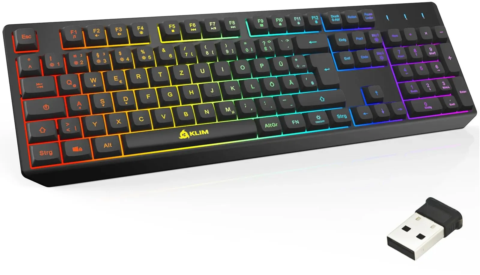 Kategorie: Tastaturen - Klim - GTIN:3701152100309 - SOFORT VERBUNDEN. Einfach den USB-Empfänger einstecken und die KLIM Chroma kabellose Tastatur sofort verwenden mit einer Reichweite von bis zu 10 Metern. Treiberinstallation ist nicht erforderlich! LANGE AKKULAUFZEIT. Nie wieder Batterien kaufen! Die Gaming-Tastatur ist mit hochwertigen, integrierten, wiederaufladbaren Akkus ausgestattet. So sparst du Geld und schonst gleichzeitig die Umwelt. RGB-HINTERGRUNDBELEUCHTUNG. Bringe deinen Schreibtisch zum Leuchten! Wähle zwischen statischem oder Atemmodus oder schalte die Beleuchtung ganz aus, wenn du möchtest. Hinweis: Die Farben sind nicht anpassbar. VERBESSERE DEINE TIPP-GESCHWINDIGKEIT. Die Membran-Tasten haben einen kurzen Tastenhub, was schnelles und angenehmes Tippen ermöglicht. SPRITZWASSERGESCHüTZT & ROBUST. Entwickelt, um alltäglichen Missgeschicken standzuhalten. Eine der wenigen spritzwassergeschützten Tastaturen in dieser Preisklasse. - 38,97 Euro bei Amazon Marketplace CE - gefunden von billiger.de Diese Logitech Gaming-Tastatur ist eine solide Wahl für Gamer mit einem begrenzten Budget. ![]() Logitech G213 Prodigy, Gaming-Tastatur