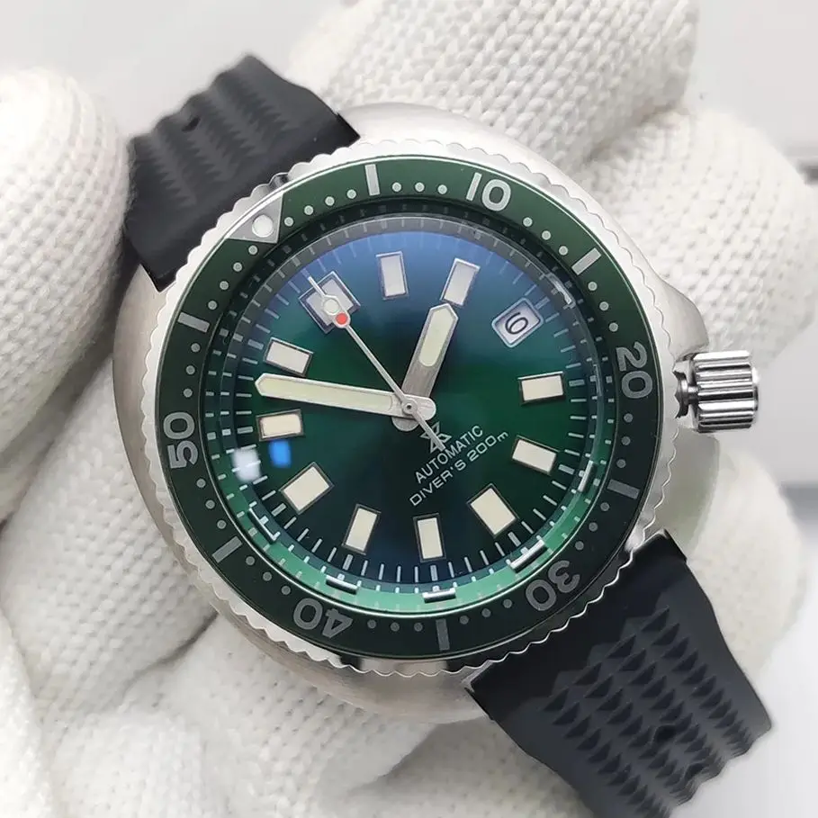 Zustand: Neu - Armbanduhren Armbanduhren für Herren - ADDIESDIVE - AD2089 - - Uhrenbeschreibung: Die ADDIESDIVE AD2089 ist eine luxuriöse analoge Quarzuhr für Herren mit japanischem 2115 Quarzwerk, einem 316L Edelstahlgehäuse mit Sand- und Polierprozess und einem schweißresistenten Edelstahlarmband. Diese Edelstahluhr eignet sich sowohl für den Business- als auch den Sportbereich und ist eine praktische Wahl für Herrenuhren. Professionelles Design der Keramiklünette: Die einseitig drehbare Keramiklünette mit 120 Zähnen ist hochhart, verschleißfest und korrosionsbeständig. Sie wurde speziell für den Tauchsport entwickelt und unterstreicht die Eigenschaften professioneller Taucheruhren und erfüllt die Anforderungen an die Zeitmessung bei Wassersportarten wie Schwimmen. BGW9 Superleuchtfarbe: Das Zifferblatt hat einen Emaille-Hintergrund mit Farbverlauf und einer leuchtenden Zeitskala. Die Zeiger in Form von Blumen sind mit BGW9 Superleuchtpulver beschichtet, das automatisch im Dunkeln leuchtet. Uhrengröße: 41 mm Durchmesser, 13 mm Höhe, 20 mm Bandanstoßabstand und 220 mm Edelstahlarmband. Konvexes Mineralglas und eine entspiegelte blaue Beschichtung - eine Kombination aus analogen Herrenuhren und Edelstahluhren - sorgen für Tragekomfort und gute Ablesbarkeit im Freien. 200 Meter wasserdicht: Der verschraubte Boden und die verschraubte Krone bilden eine bis zu 200 Meter wasserdichte Konstruktion, die zum Händewaschen und Schwimmen (einschließlich Freitauchen) geeignet ist. ... Diese Turtle Diver Uhr bietet ein automatisches mechanisches Uhrwerk und Saphirglas zu einem attraktiven Preis. ![]() Turtle Diver NH35 automatische mechanische Uhr 10ATM AR beschichtetes Saphirglas leuchtende NH35 automatische mechanische Taucheruhr
