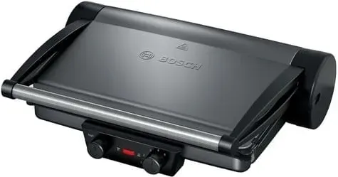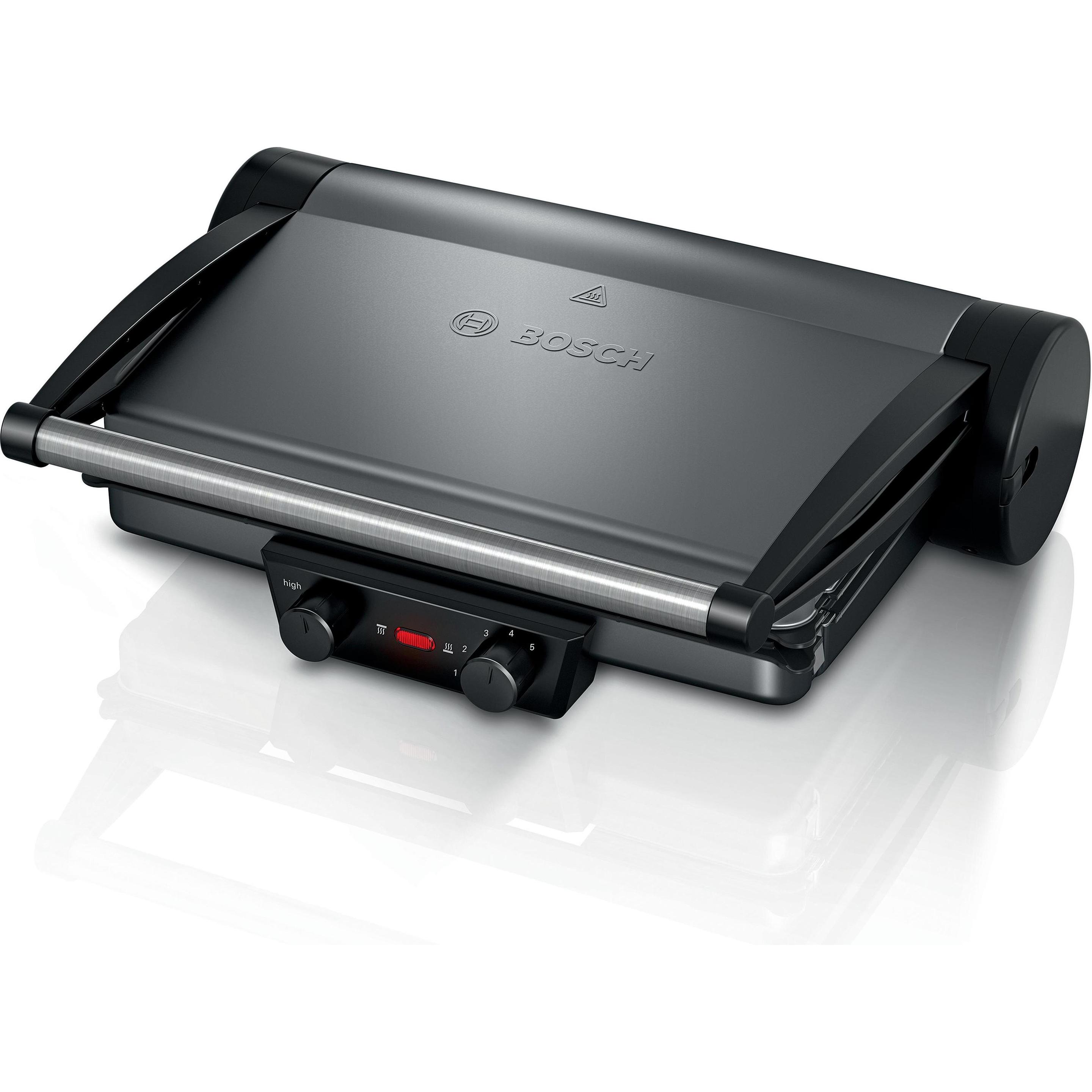 Auf Lager Versand durch AmazonBosch Tischgrill, elektrisch, 3-in1-Kontaktgrill, individueller Temperaturregler, Fettablaufrinne, Auflaufform, herausnehmbare Aluminium-Grillplatten, einfache Reinigung, kompakt, 2000 W, TCG4215